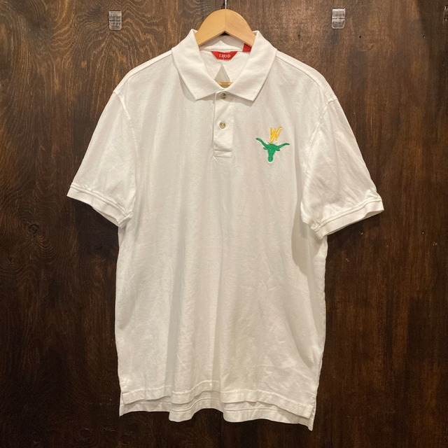 USA古着 IZOD アイゾッド 鹿子 ポロシャツ テキサスロングホーン 刺繍 白 Lサイズ アメリカ古着 半袖ポロシャツ
