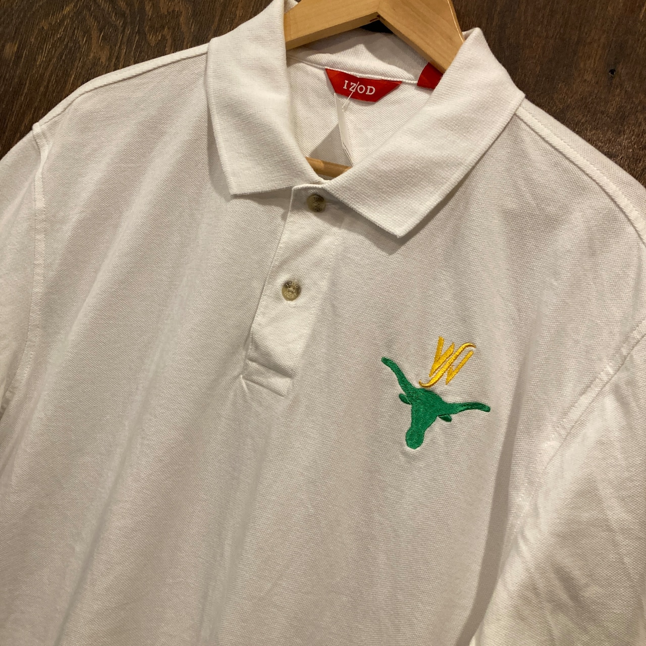 USA古着 IZOD アイゾッド 鹿子 ポロシャツ テキサスロングホーン 刺繍 白 Lサイズ アメリカ古着です。