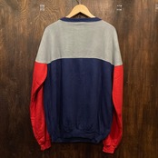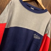ネイビー、レッド、グレーのマルチカラーに左胸にロゴプリントが施された個性的な一枚。