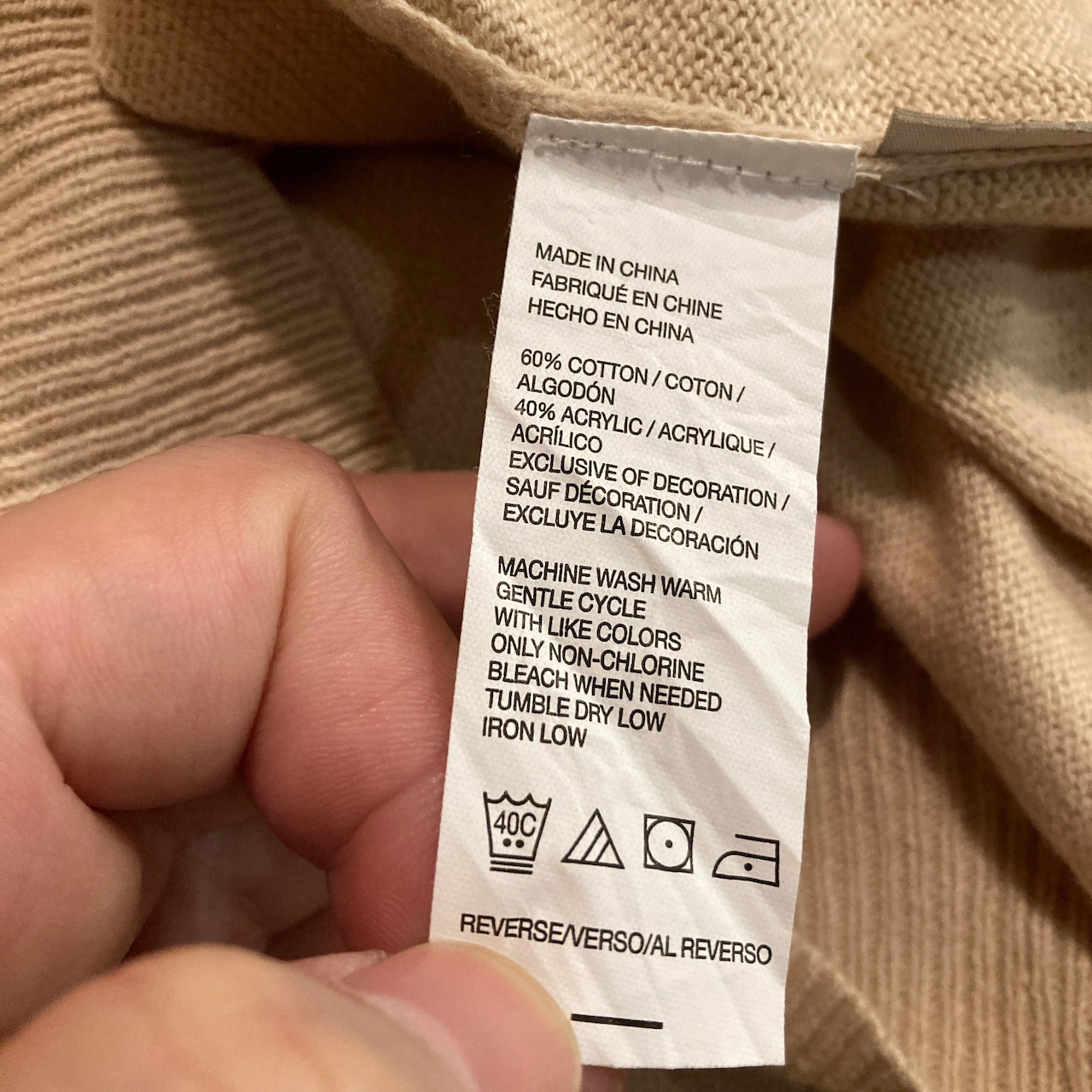 コットン60%アクリル40%の薄手で軽めの質感でウールのようなチクチクさもなく、着心地良い一枚です。
