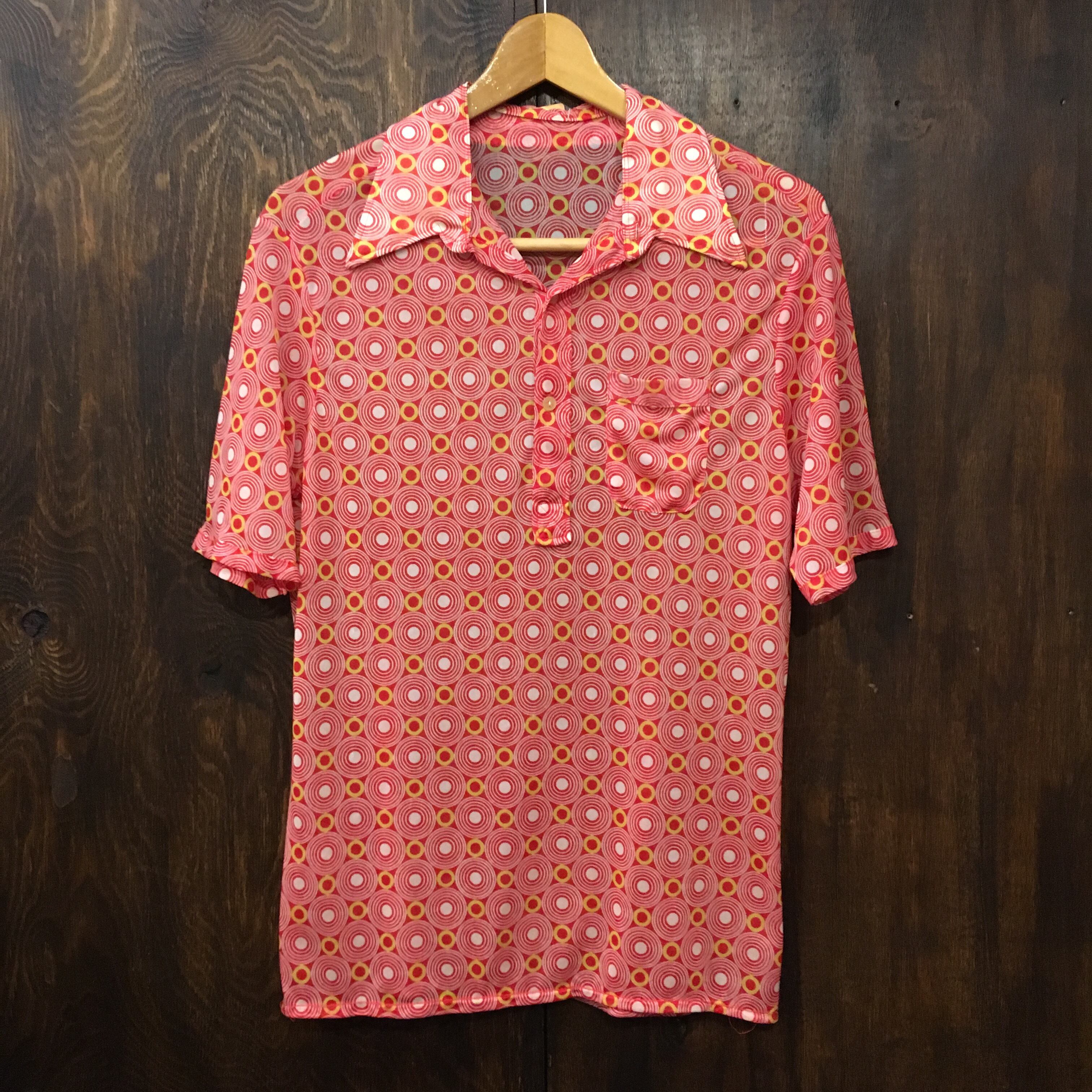 ビンテージ 古着 総柄 レトロ ポロシャツ 柄シャツ 70年代 ビンテージ サイケデリック