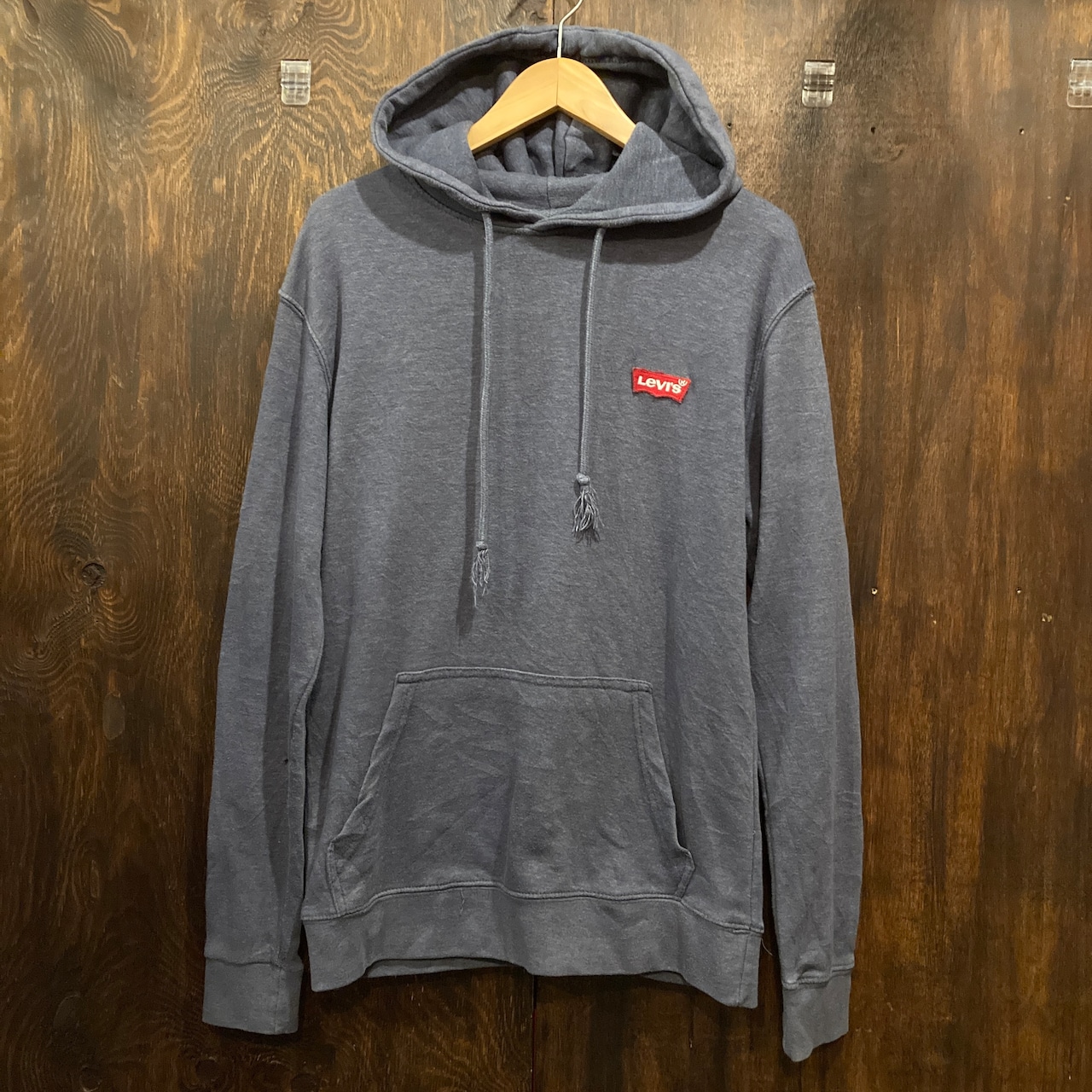 Levi's スウェットパーカー リーバイス ロゴワッペン グレー USA古着 Mサイズです。