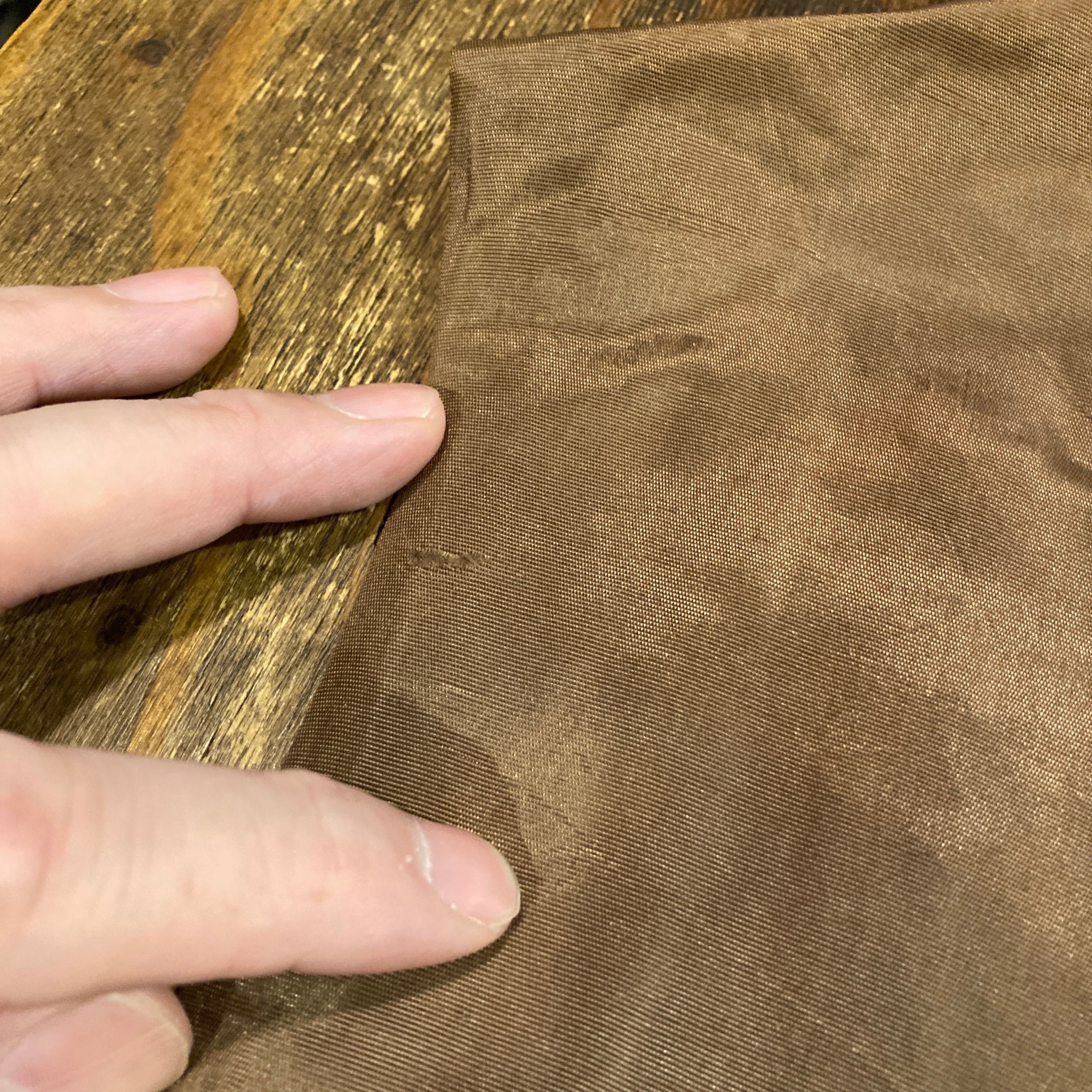 フロントはこげ茶のコーデュロイ素材、バックも同色系のサテン生地で渋めの一枚。