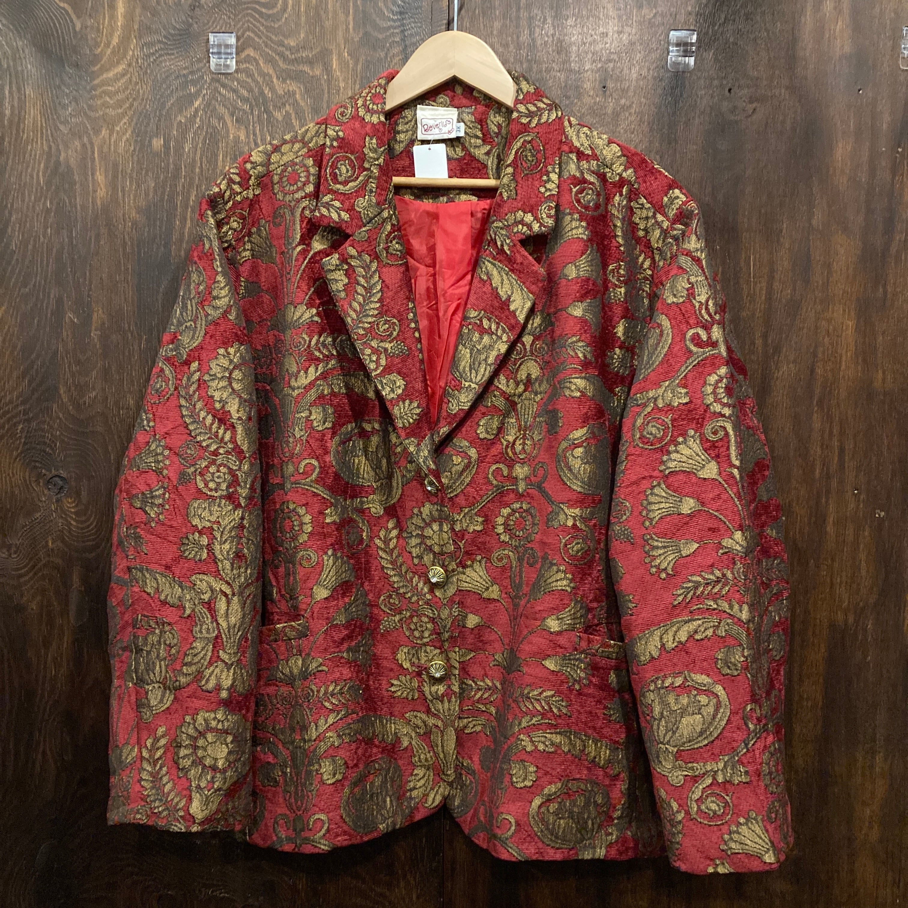 Beverly's ボタニカル柄 テーラードジャケット ゴブラン織り 赤 総柄 スーツジャケット ゴブランジャケット