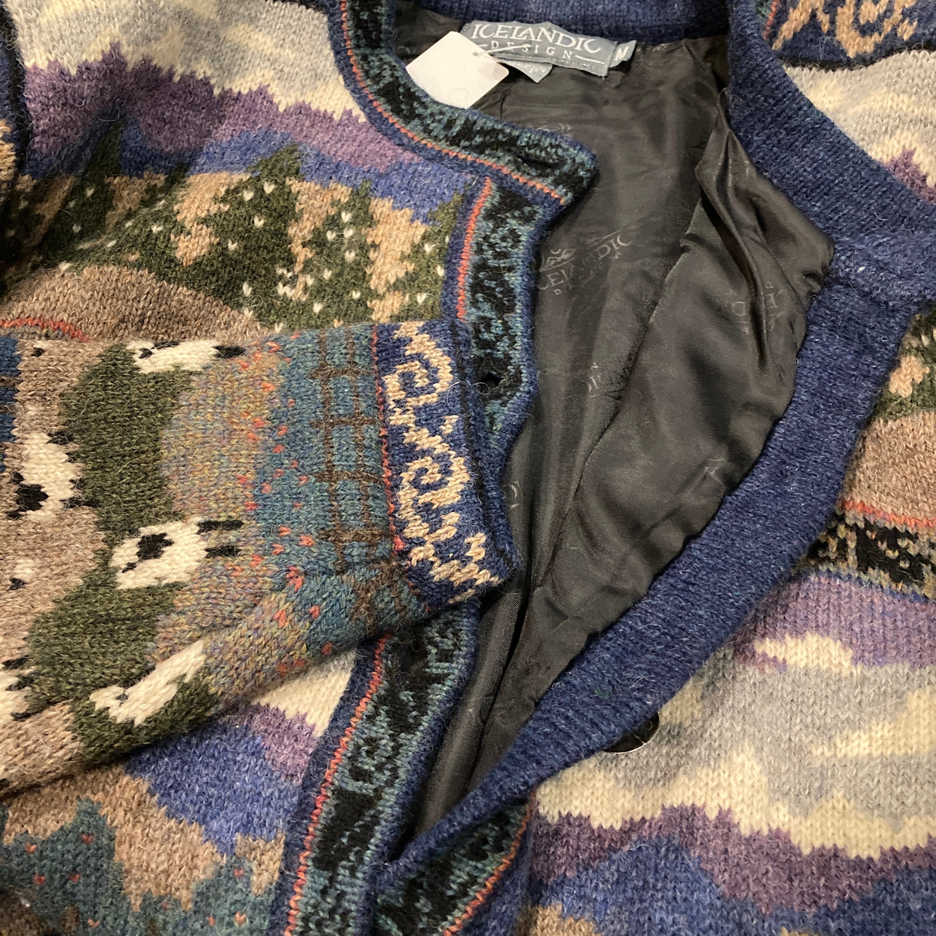 Icelandic Design クルーネック カーディガン 風景柄 ニット ウールニット Mサイズです。
