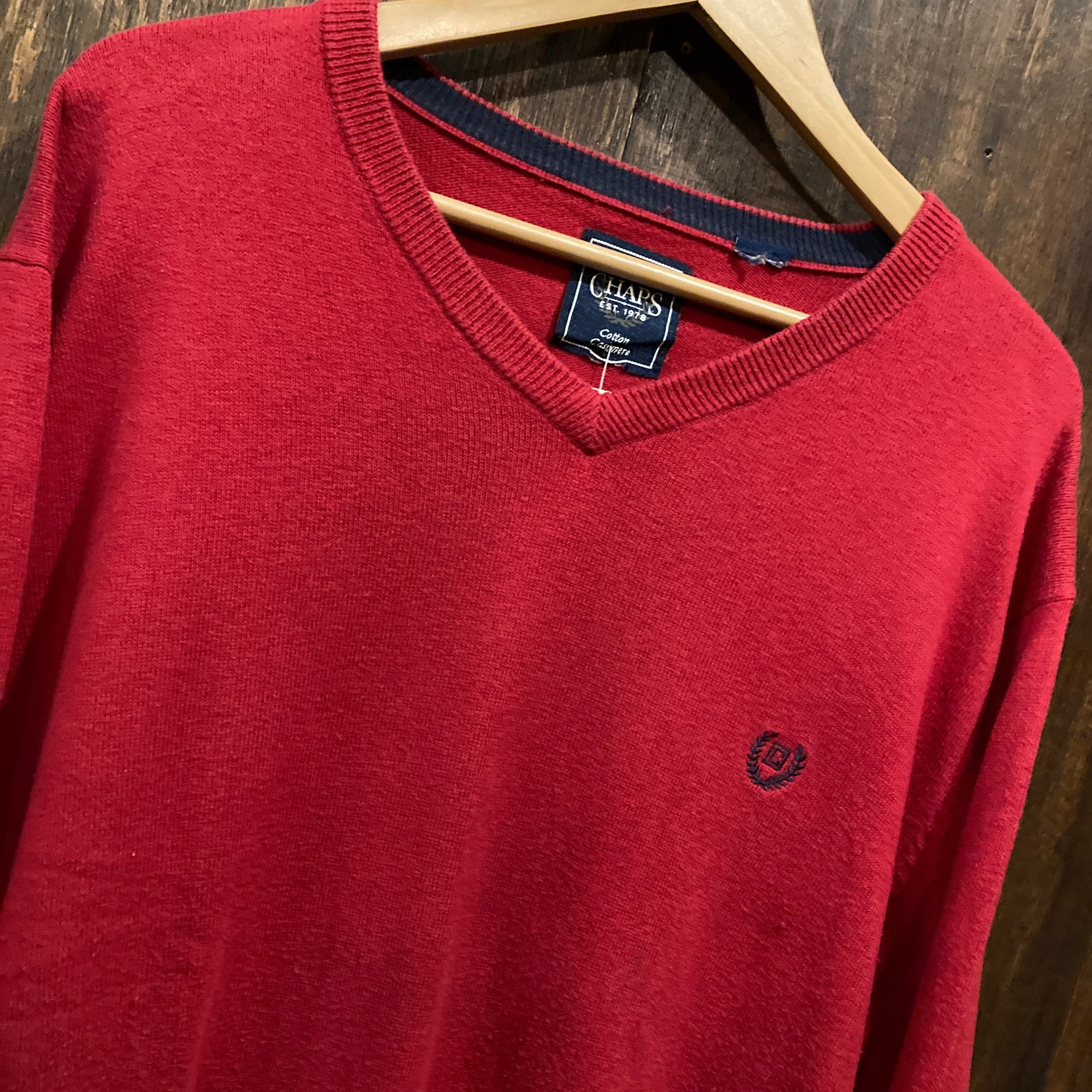 CHAPS チャップス Vネックニット コットンニット 赤 Lサイズ ニットです。
