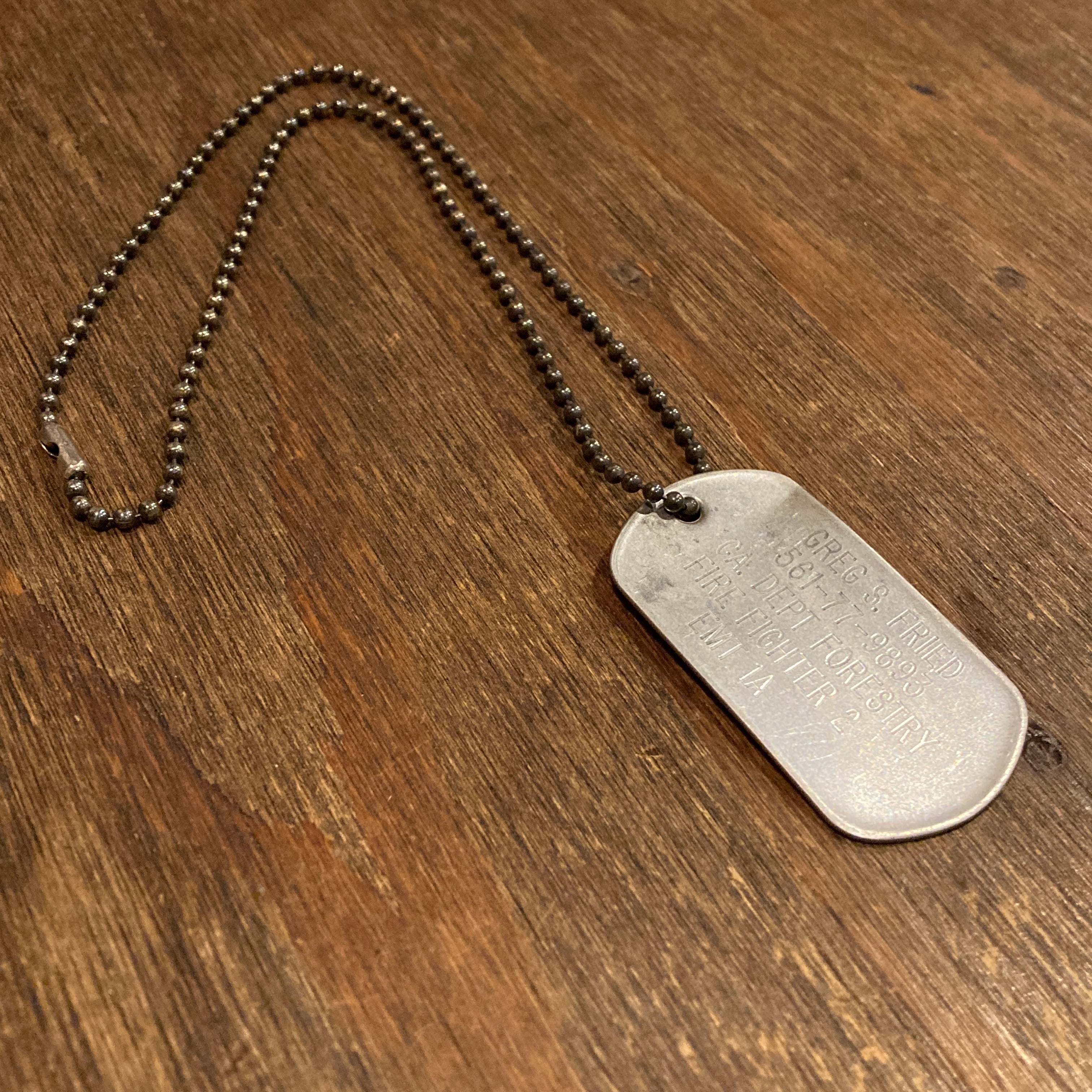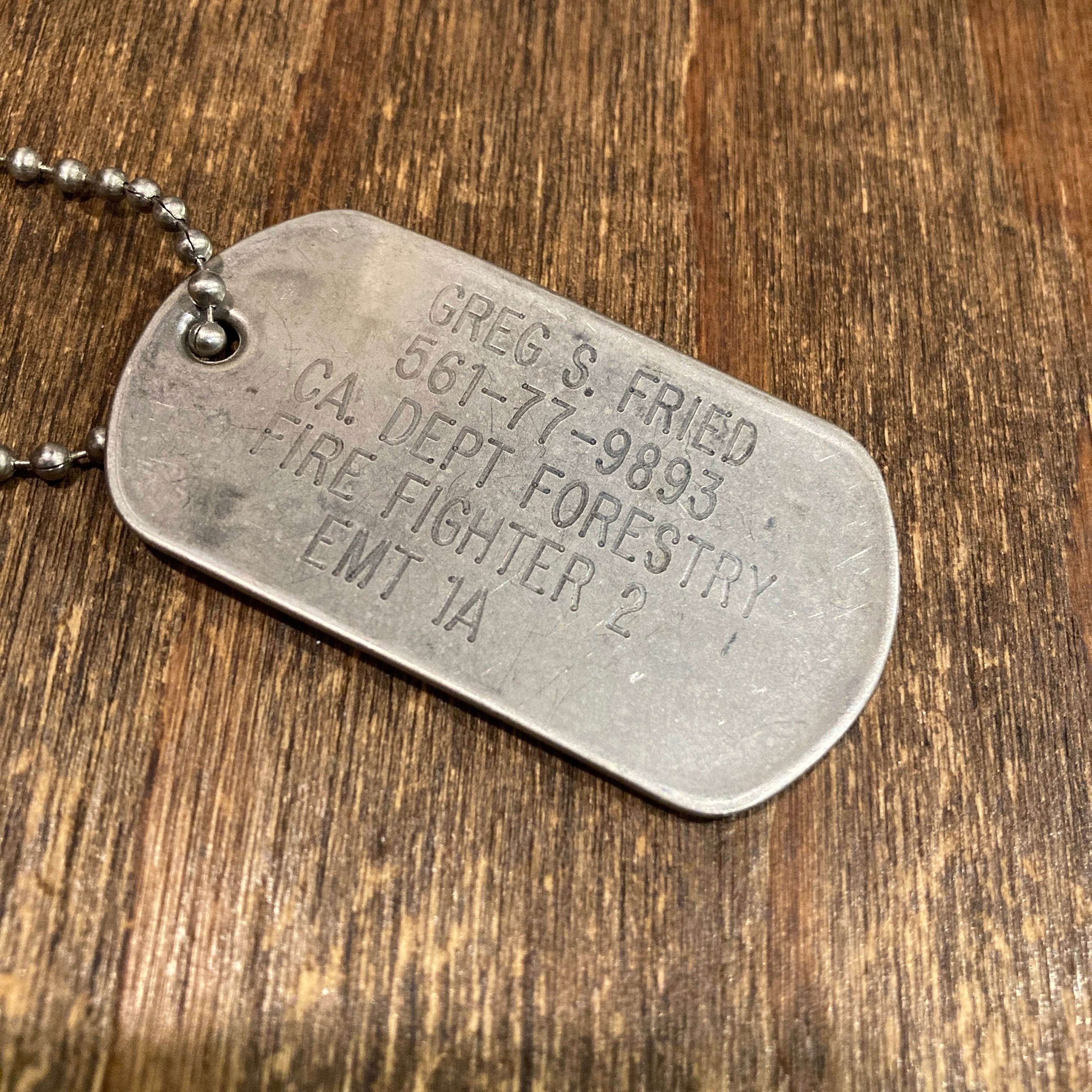 カリフォルニア州森林局の消防士用のIDタグ、通常ドッグタグです。