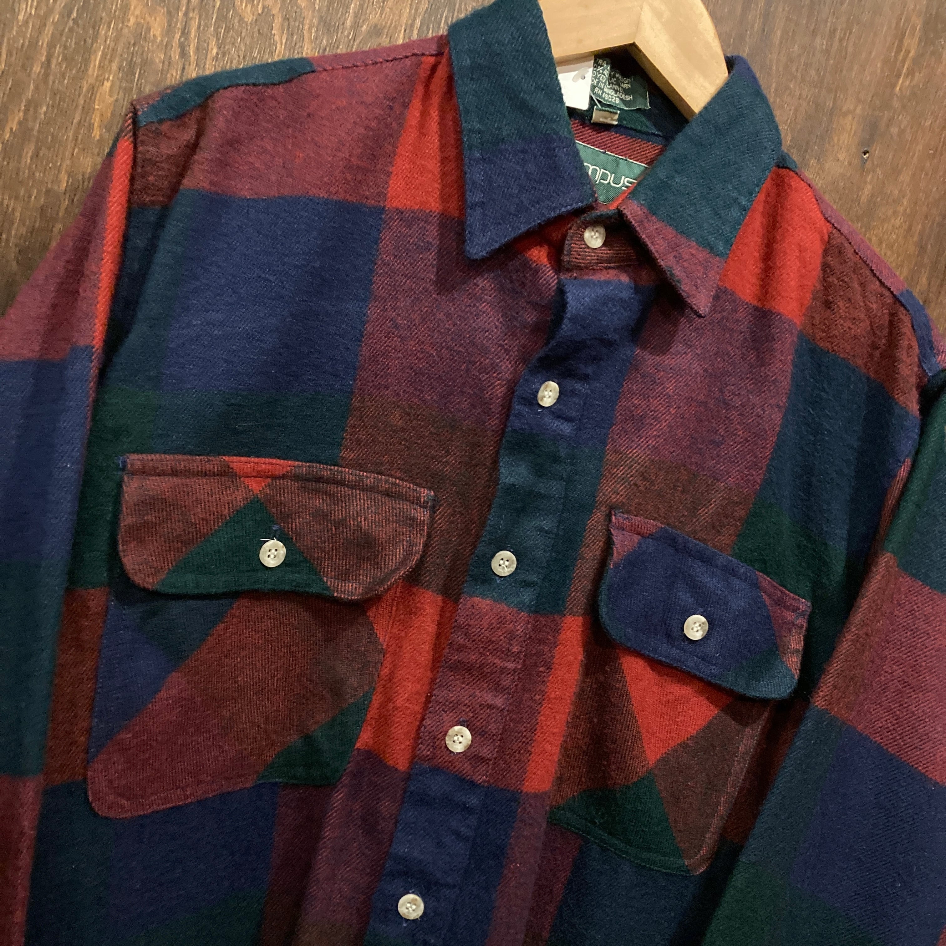 CAMPUS キャンパス 90s アクリル 長袖 チェックシャツ アメリカ古着 フランネルシャツ 90s