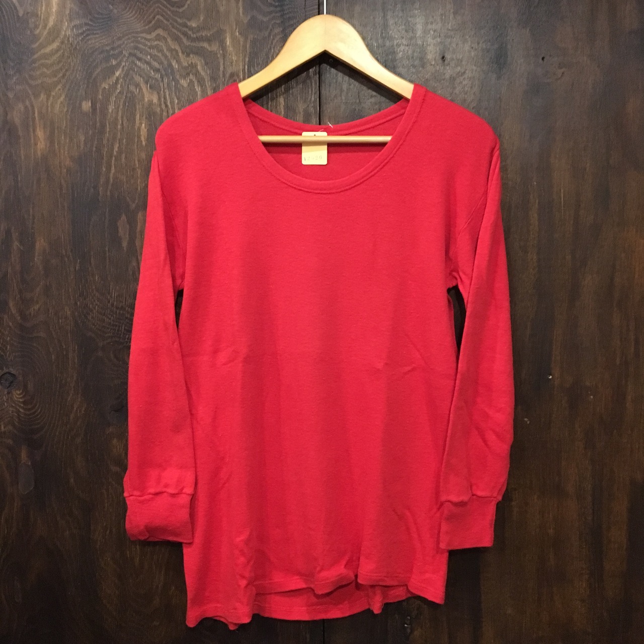 ユーロ古着 ブルガリア軍 Uネック カットソー 染め レッド ヨーロッパ古着 ミリタリー ロンT 長袖Tシャツ