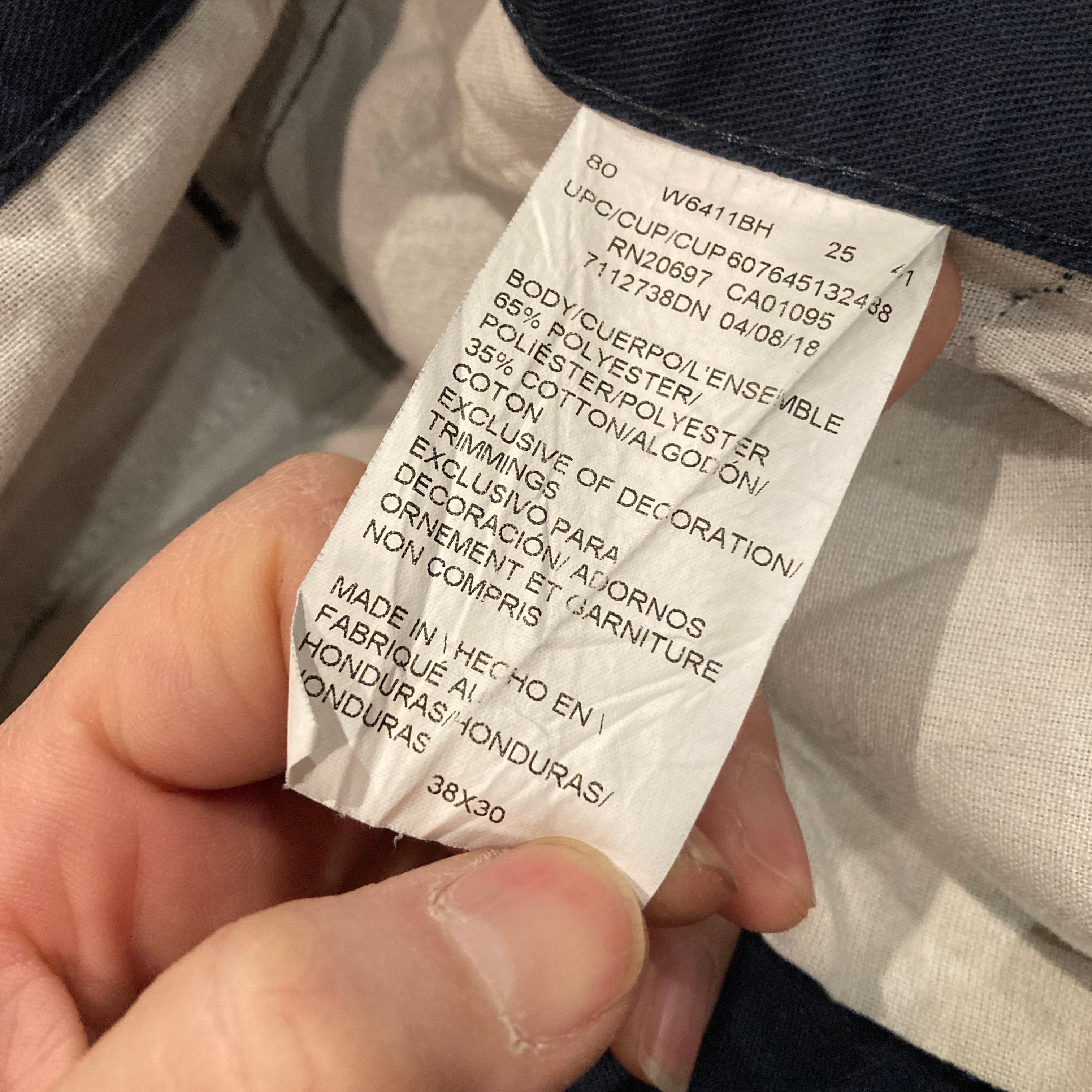 コットン35%ポリエステル65%の874よりやや薄手の質感。
