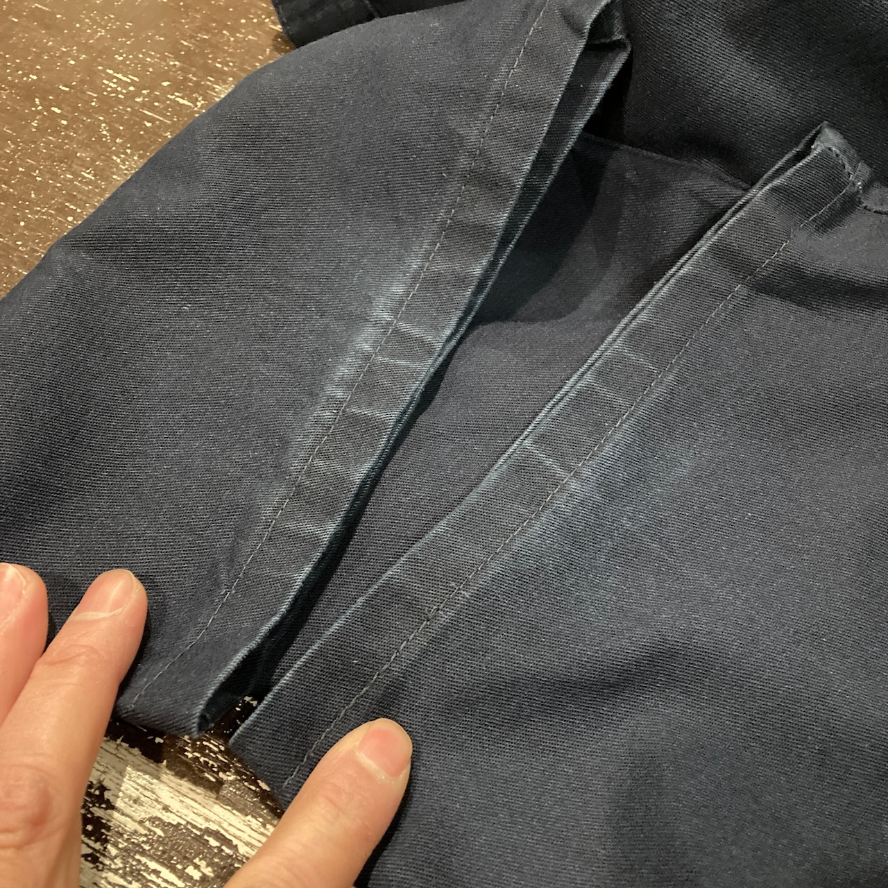 バッグポケット部や裾などリアルワークウェア特有の全体的に色褪せた良いフェード感があります。