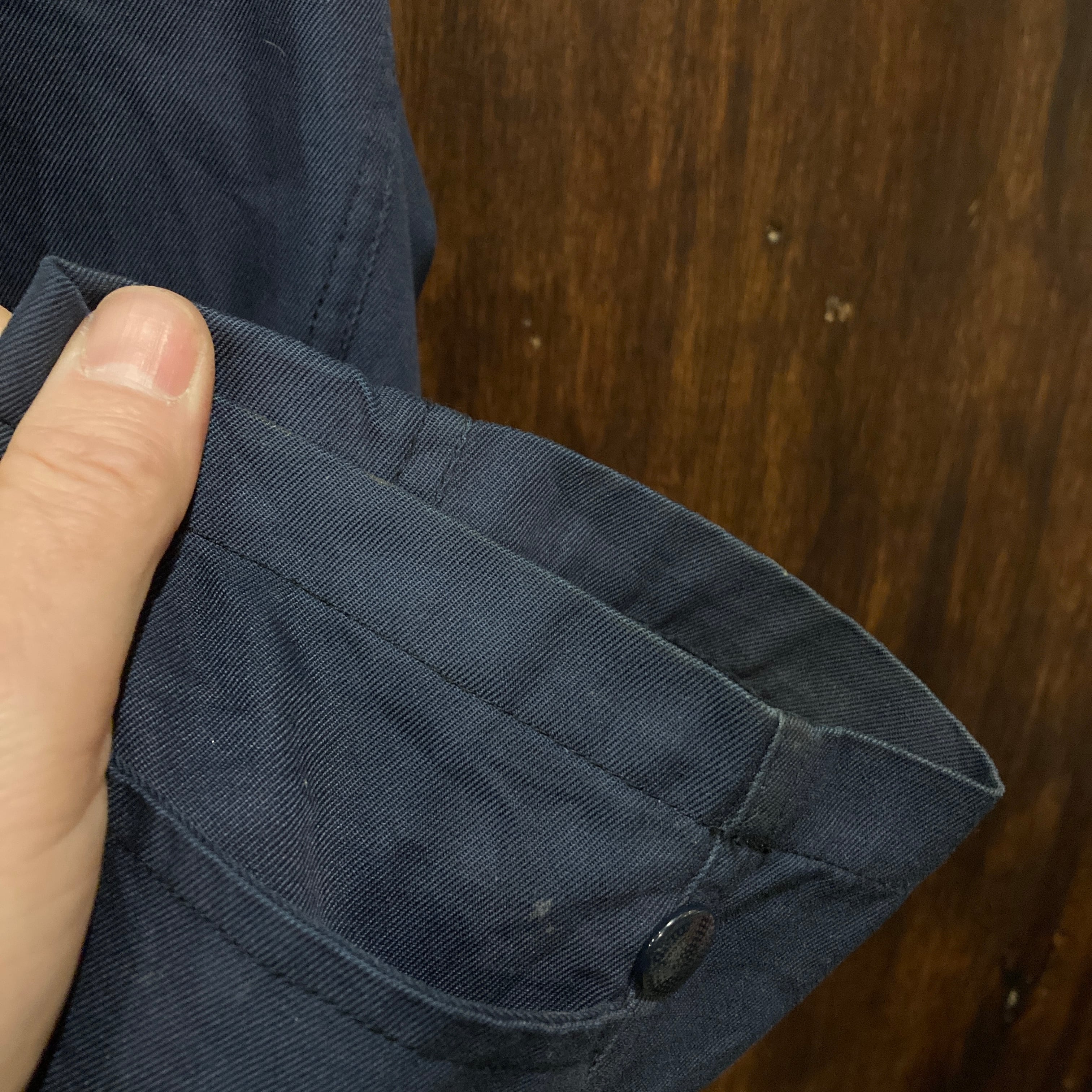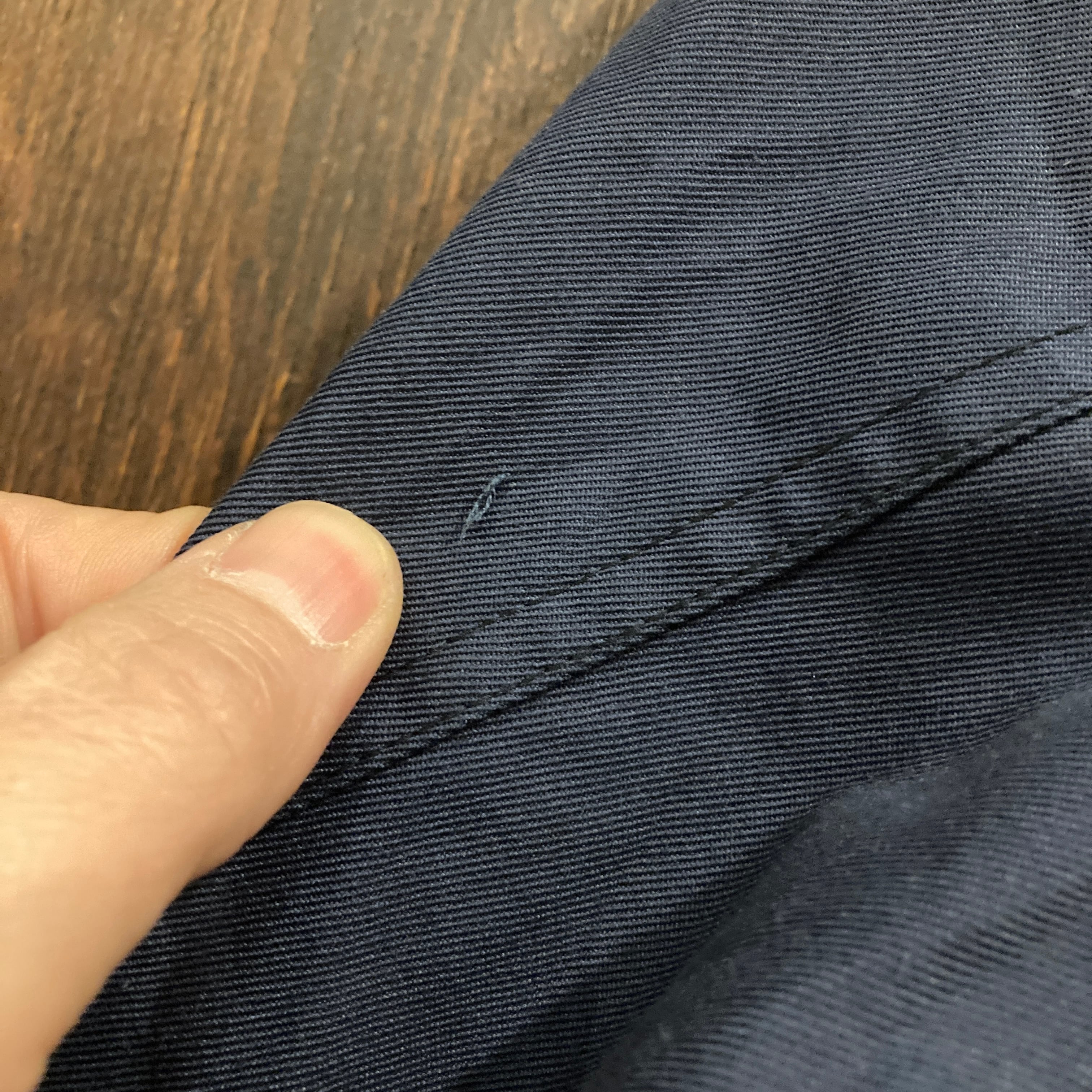 コットン×ポリエステル素材のコットンツイルっぽいしっかりした質感のネイビーボディ。