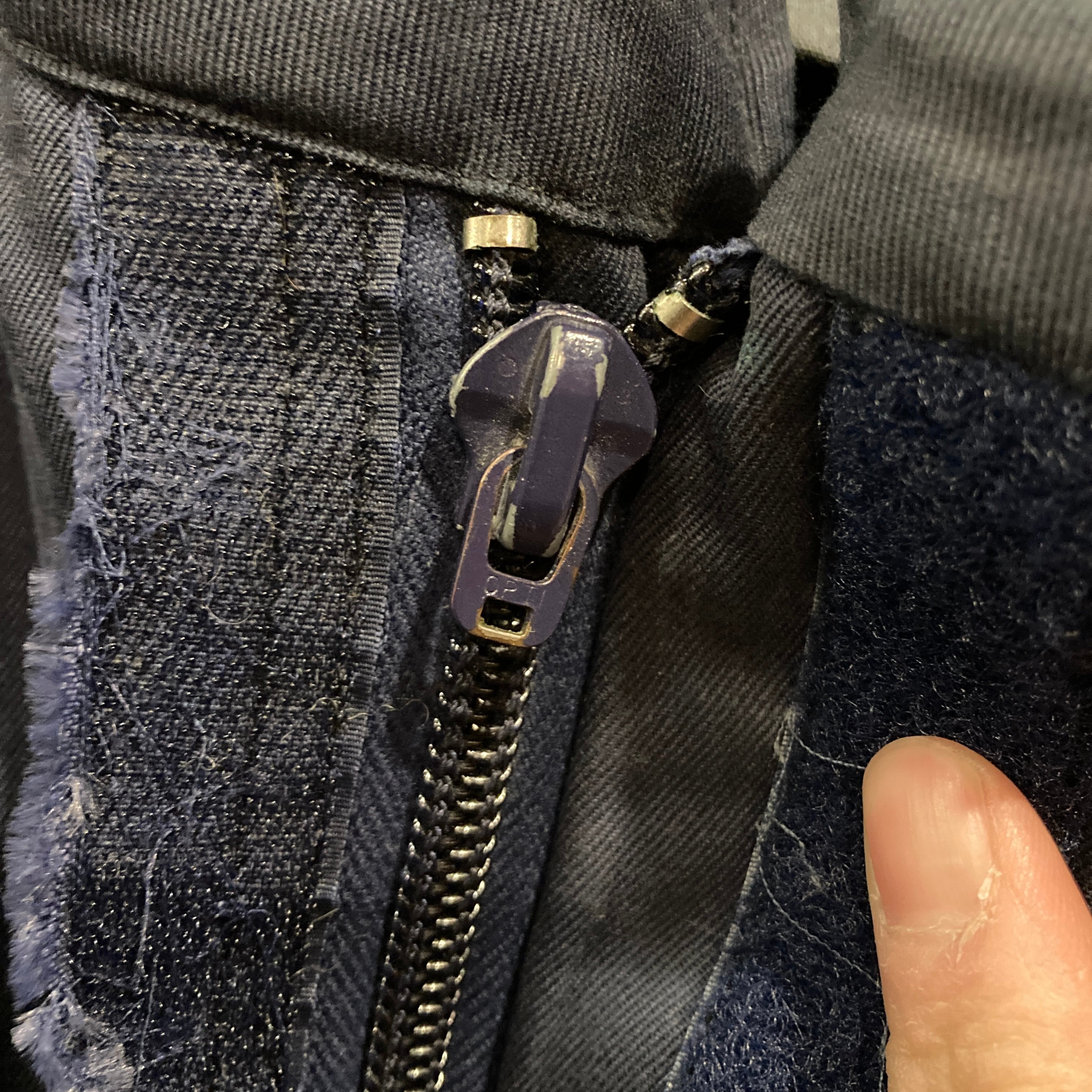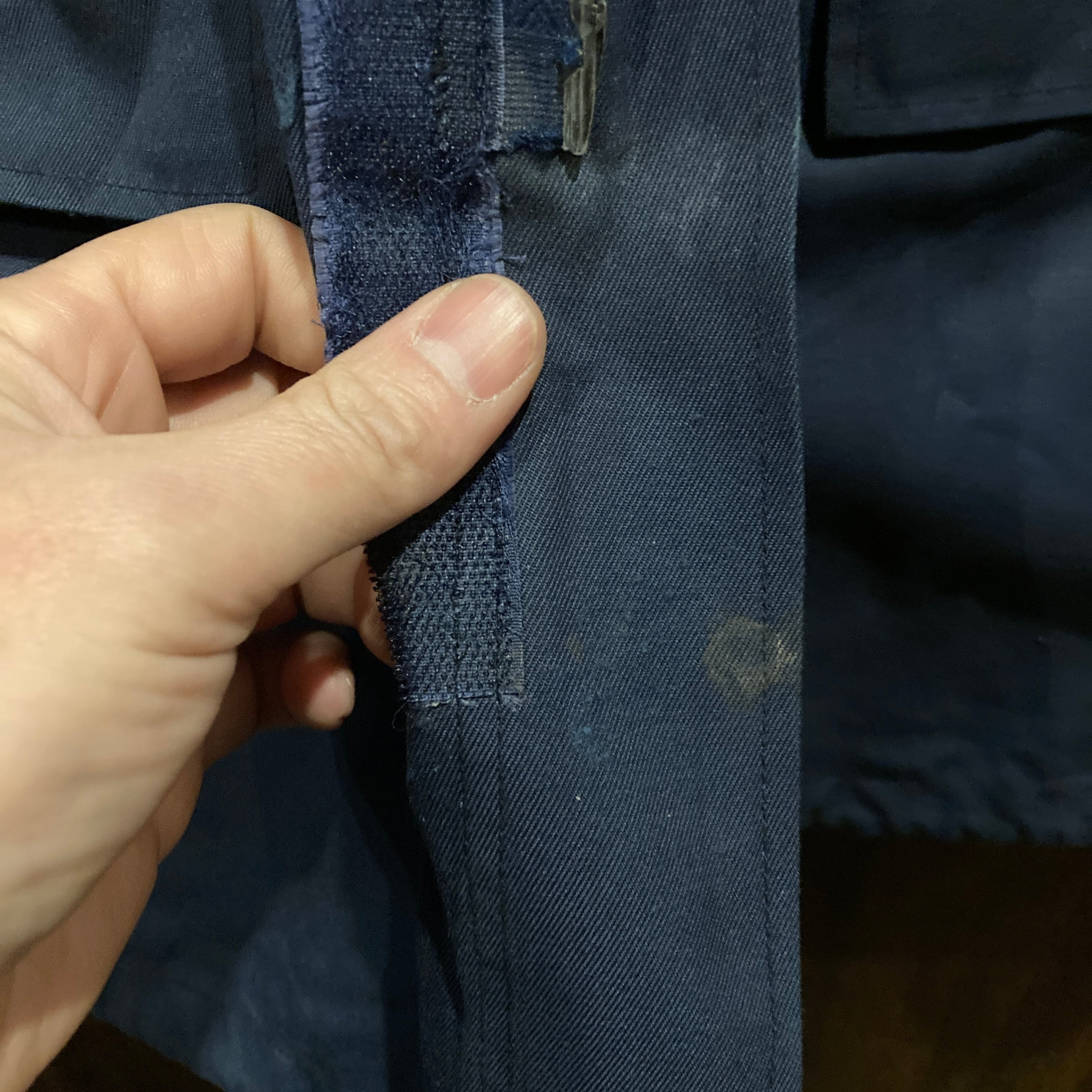 フロントジップの持ち手欠損、ベルクロ部のステッチほつれ等有り。