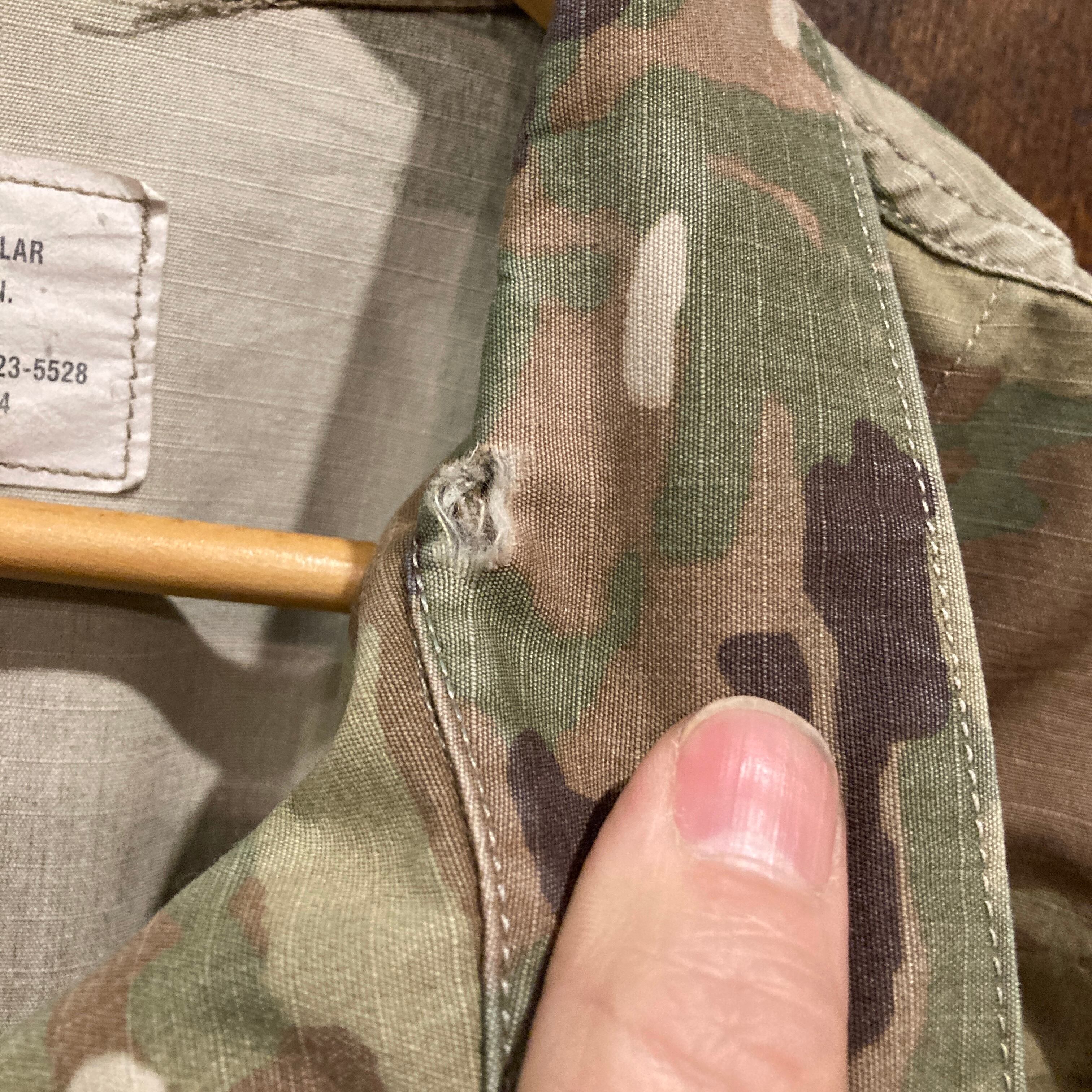 2005年から2015年辺りまで採用された、グレーをベースにしたデジタルカモ柄(UCP迷彩)の後継として以降アメリカ軍に採用されたOCPマルチカム迷彩柄のコンバットジャケット。
