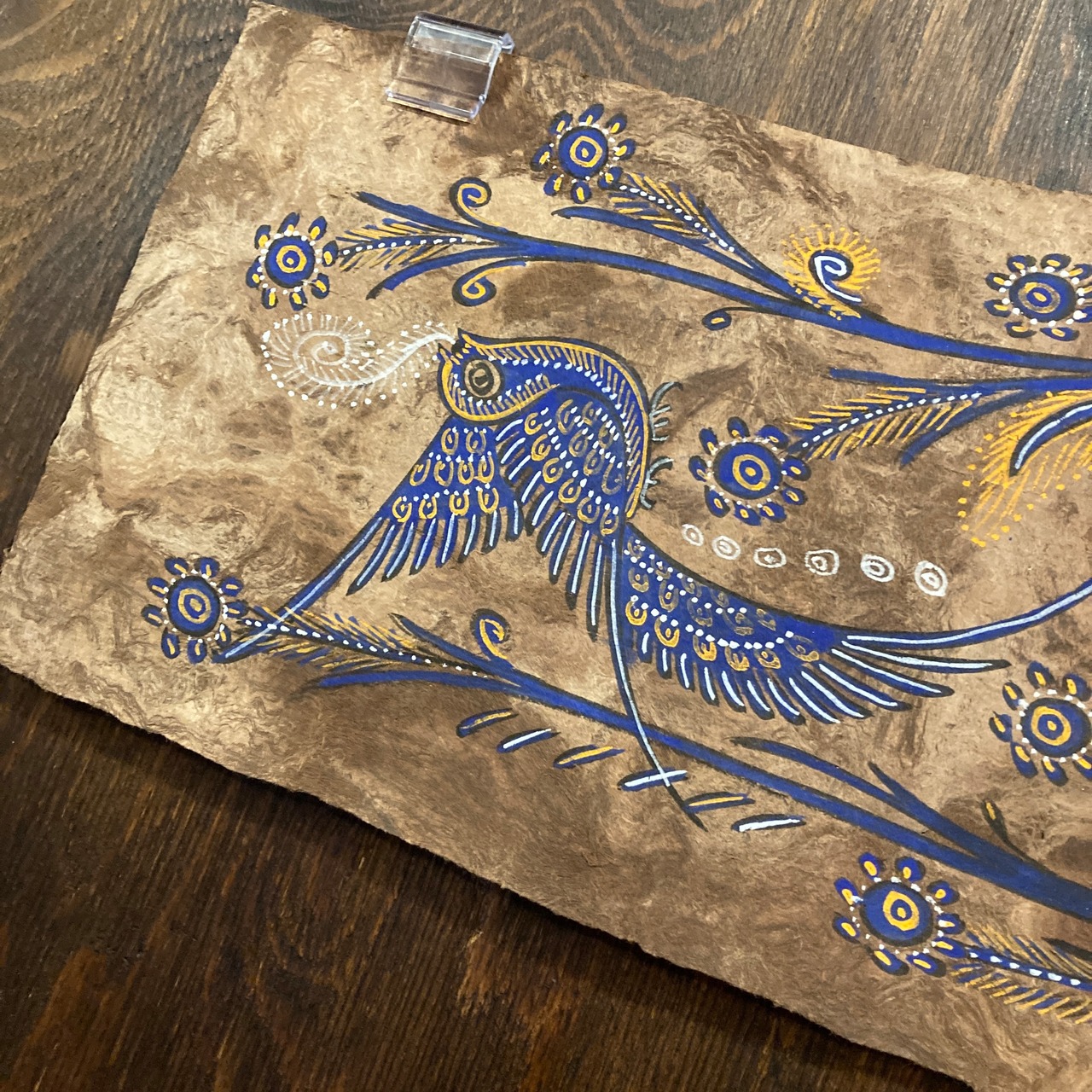 メキシコの伝統的な樹皮紙、アマテ紙にペイントが施された一品。