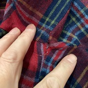 レッド×ネイビー系のチェックが渋めで合わせやすい良い雰囲気。