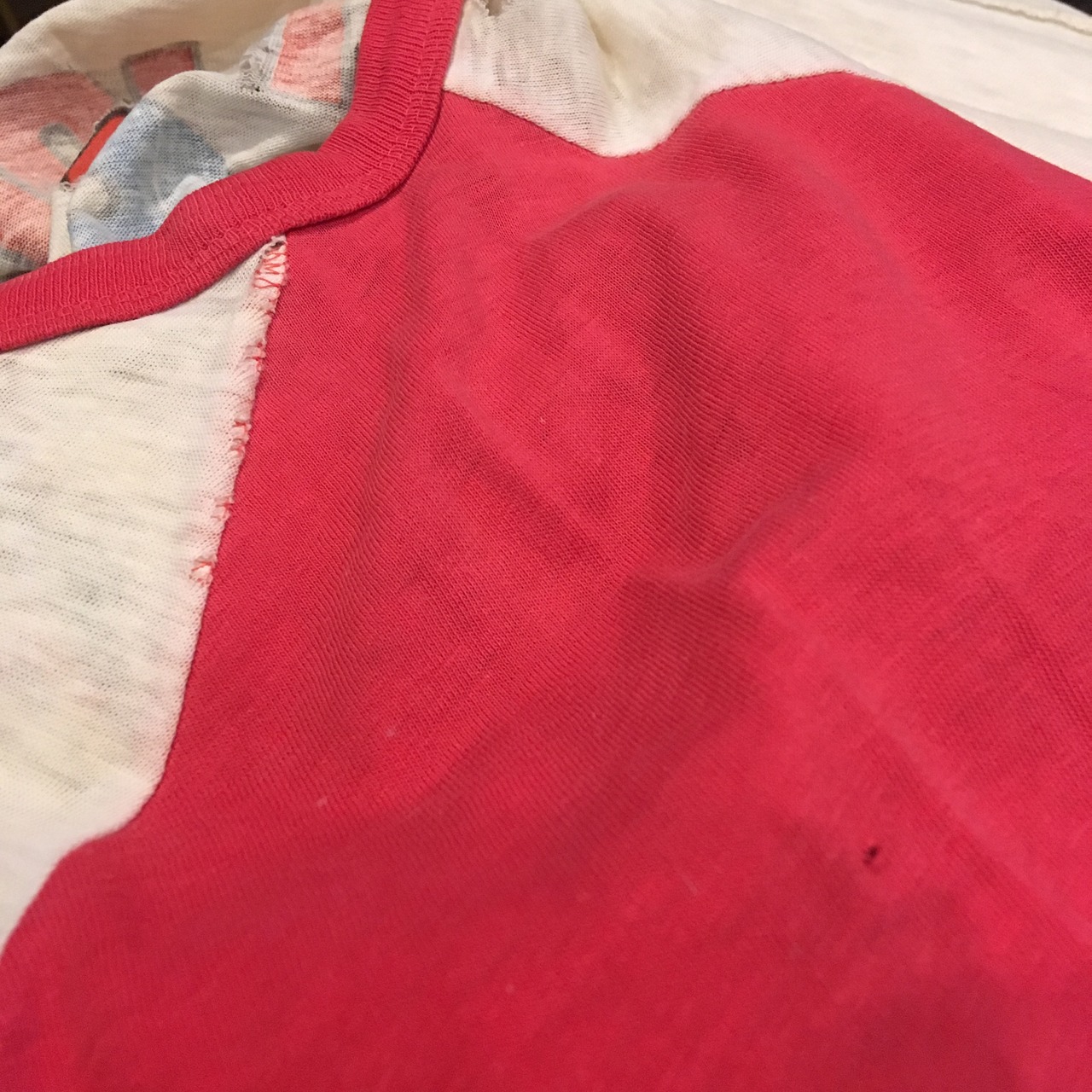 ステッチ部やプリント沿いが破れたりしており、唯一無二の存在感です。
