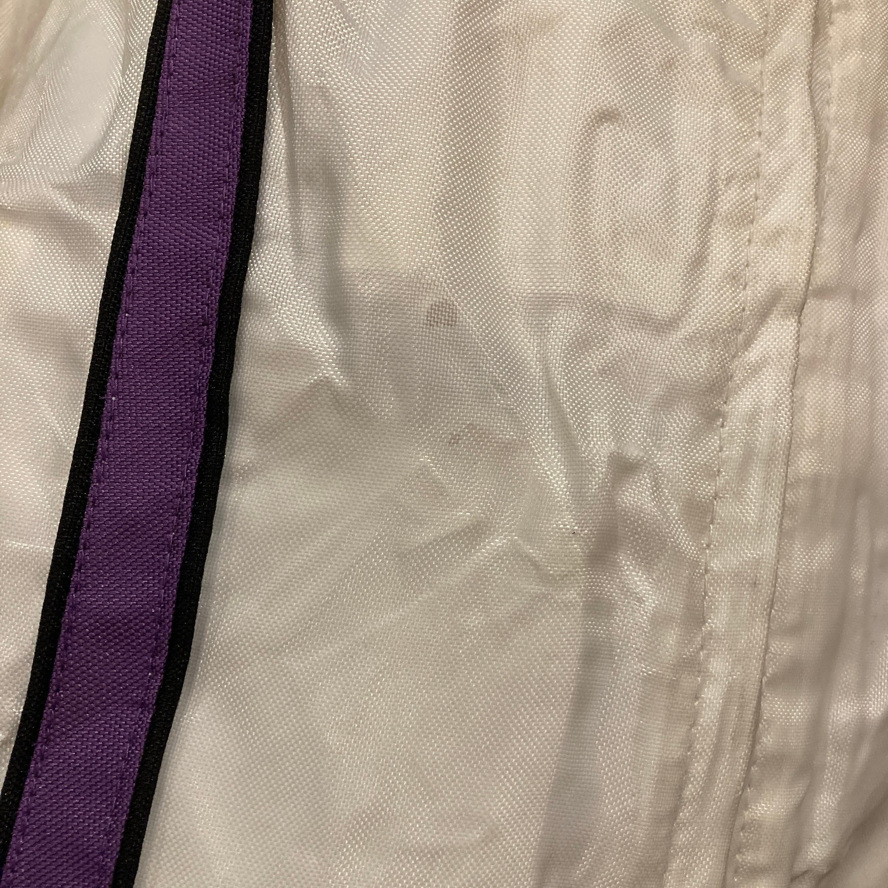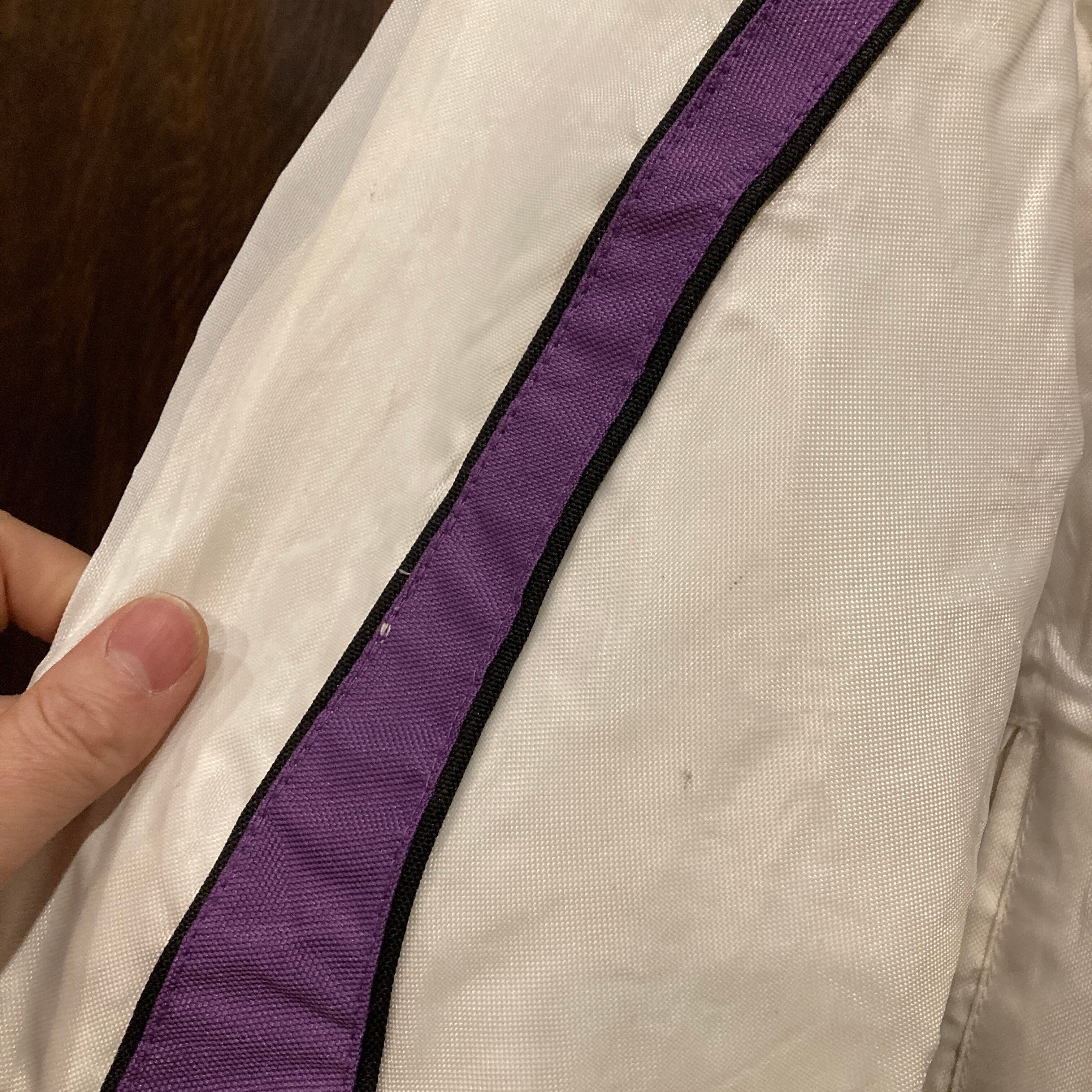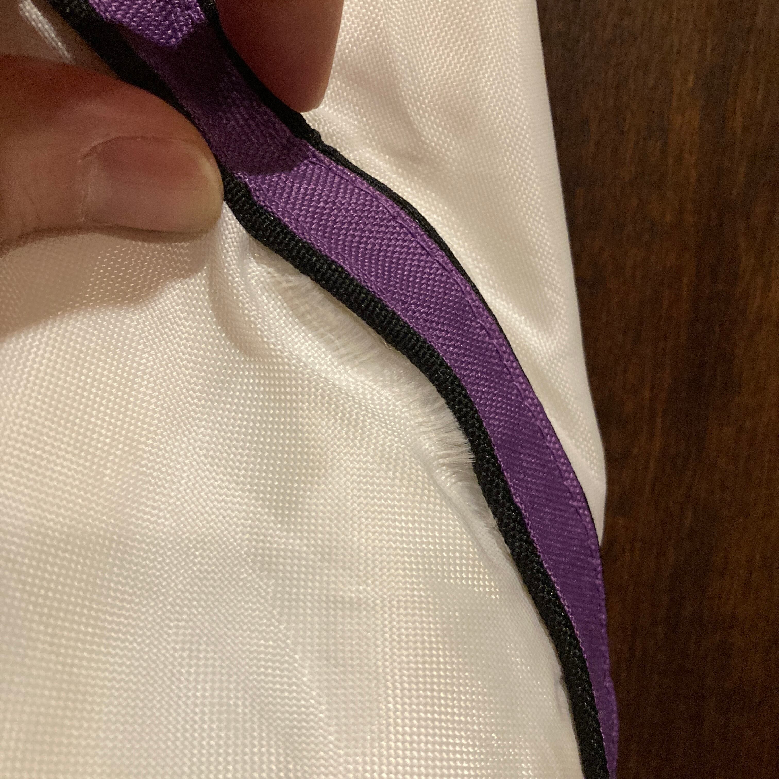 光沢感のある白ボディに紫×黒のパイピングがお洒落な一品。