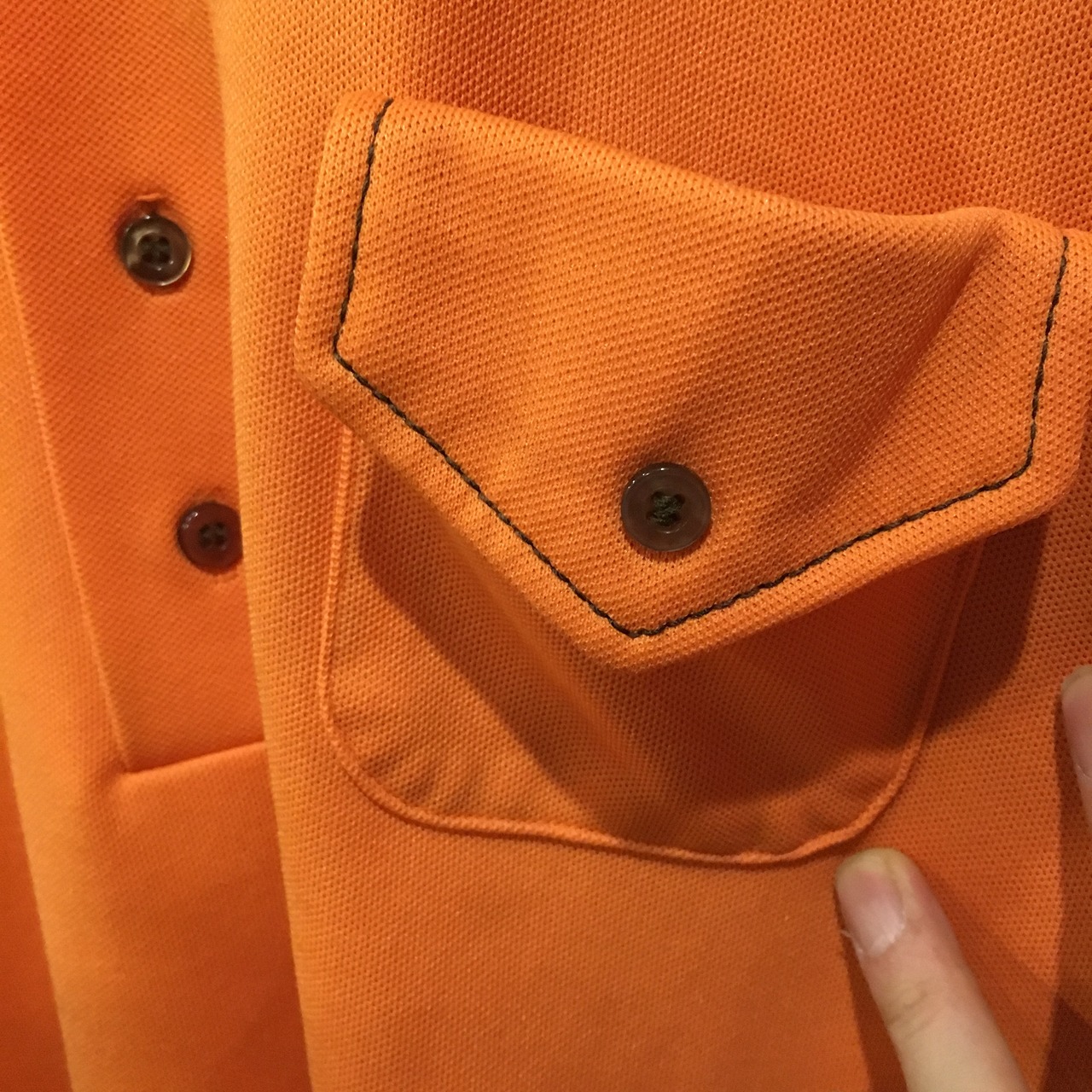 胸下まで大きく開くフロントボタン、襟元のステッチ使い、フェイクフラップポケットなどこだわったデザインです。