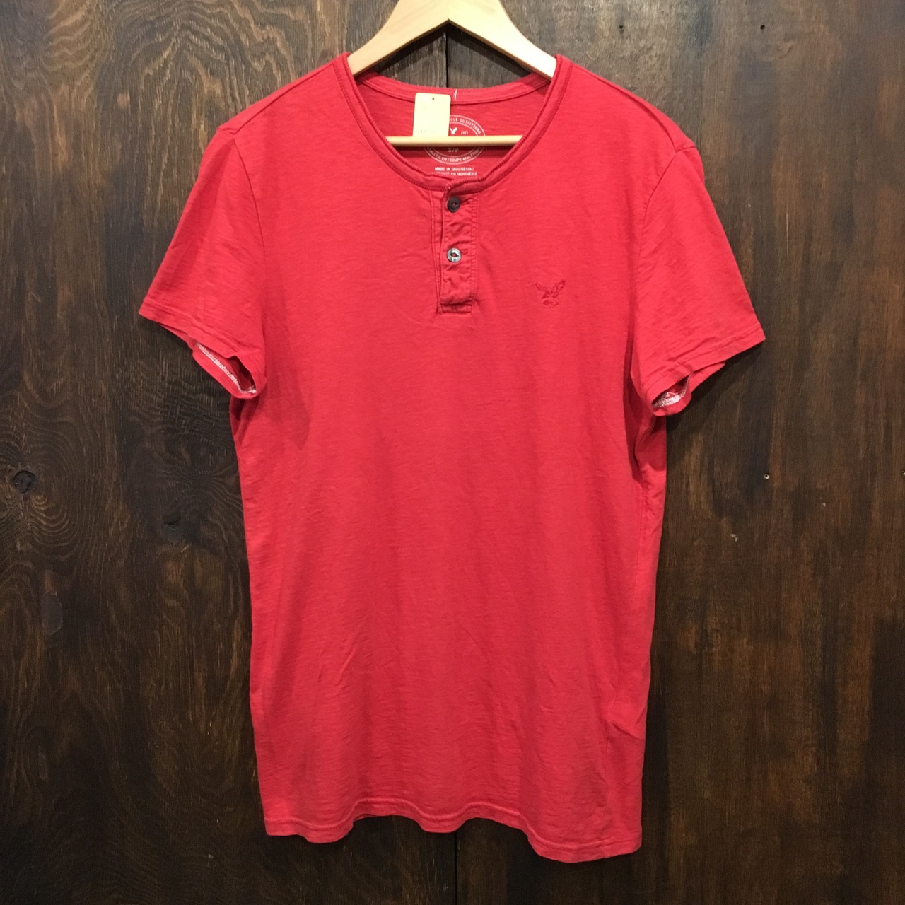 AMERICAN EAGLE アメリカンイーグル 半袖 ヘンリーネック Tシャツ カットソー 赤 Sサイズ