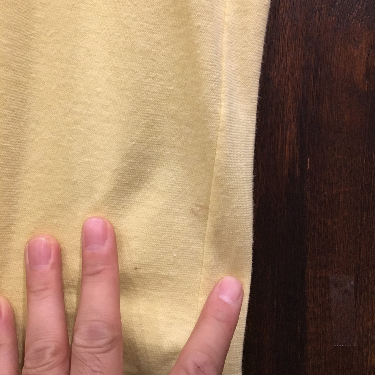 淡いレモンイエローボディにレトロなスニーカーとJOGGINGプリント。