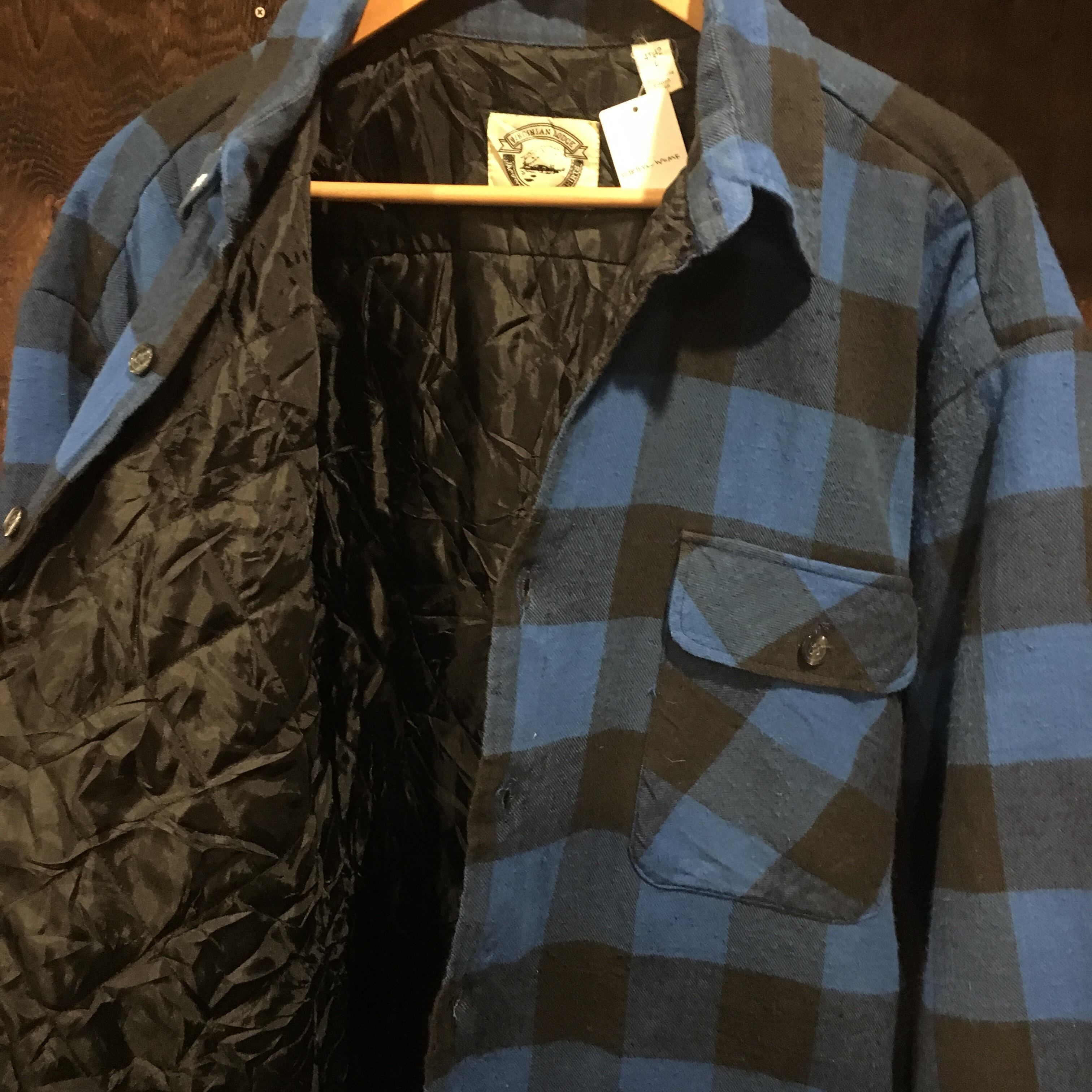 青×黒のブロックチェックが良い雰囲気の中綿入りネルシャツ。