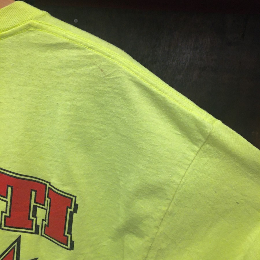 アメリカ古着 半袖Tシャツ ポケットT 企業物 蛍光イエロー ルーズシルエットです。