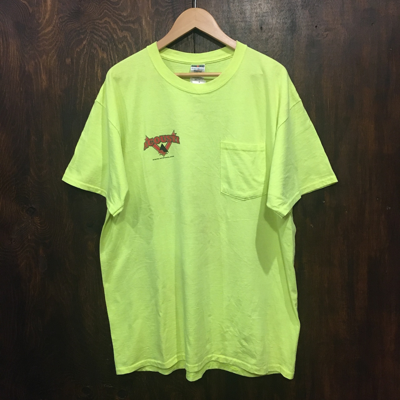 アメリカ古着 半袖Tシャツ ポケットT 企業物 蛍光イエロー ルーズシルエット