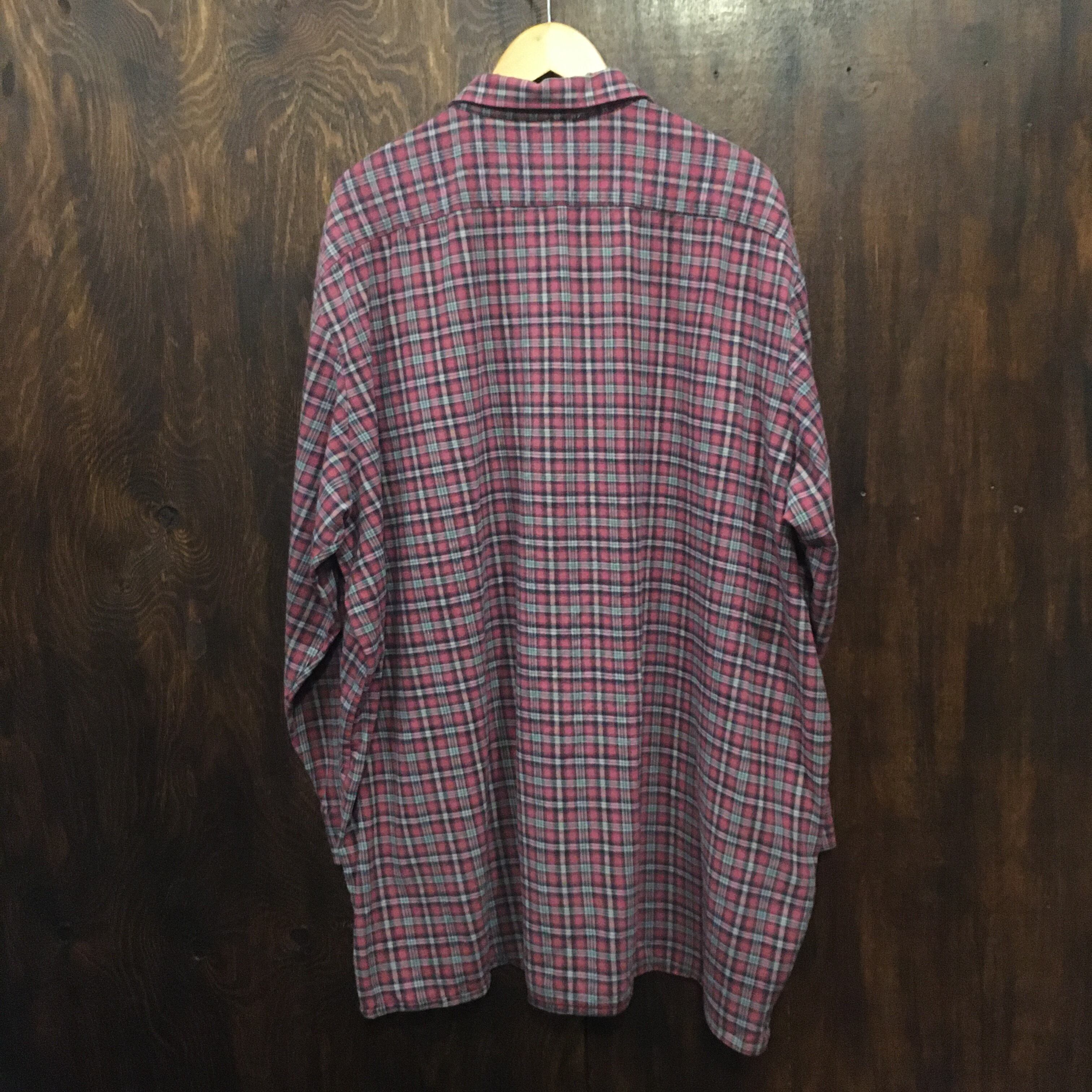 ユーロ古着 ビッグサイズ 長袖シャツ チェックシャツ ルーズシルエット 赤です。
