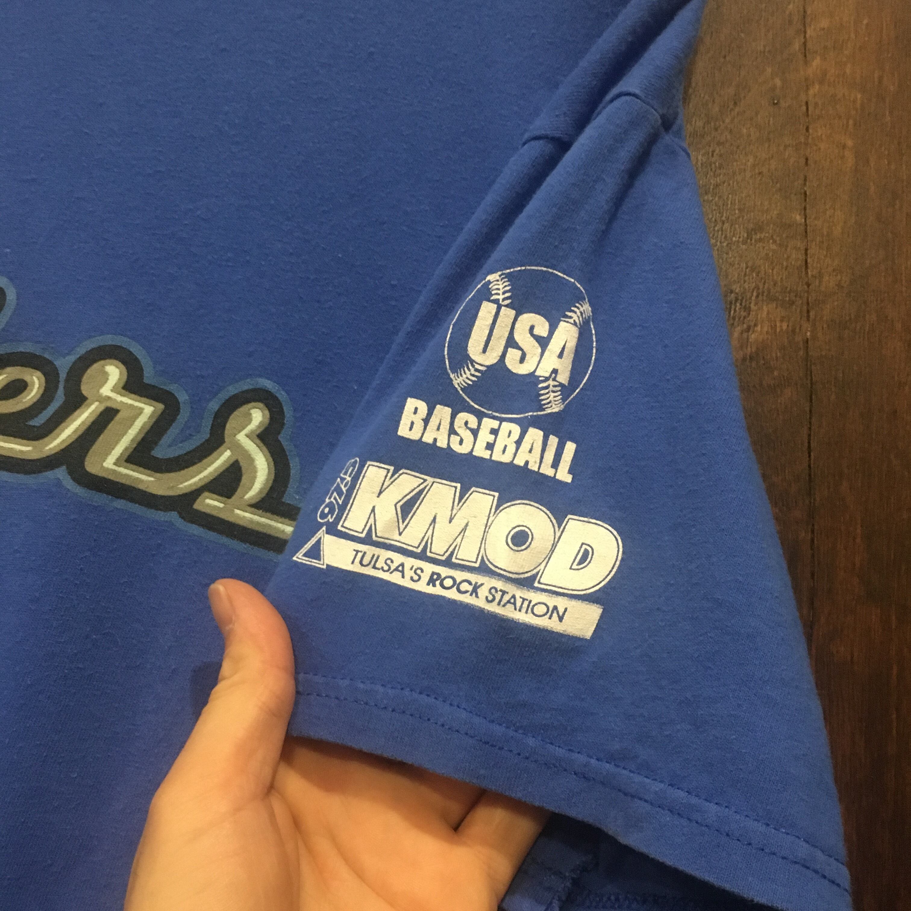 アメリカ古着 半袖Tシャツ プリントT ナンバリング 青 両面プリント Mサイズです。