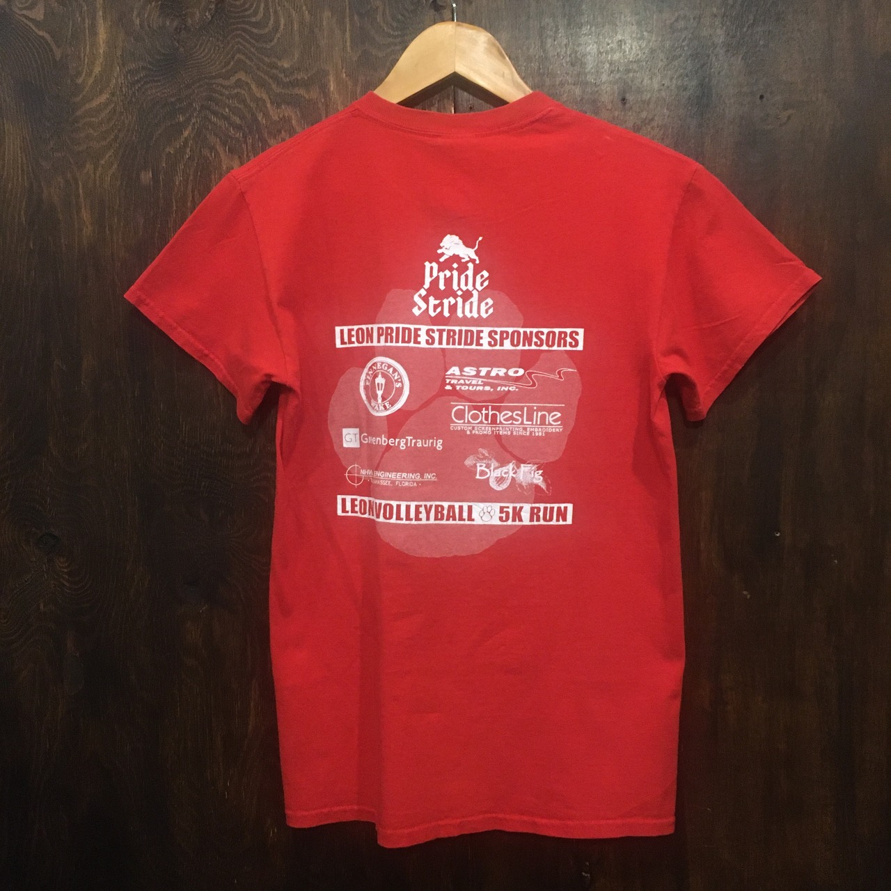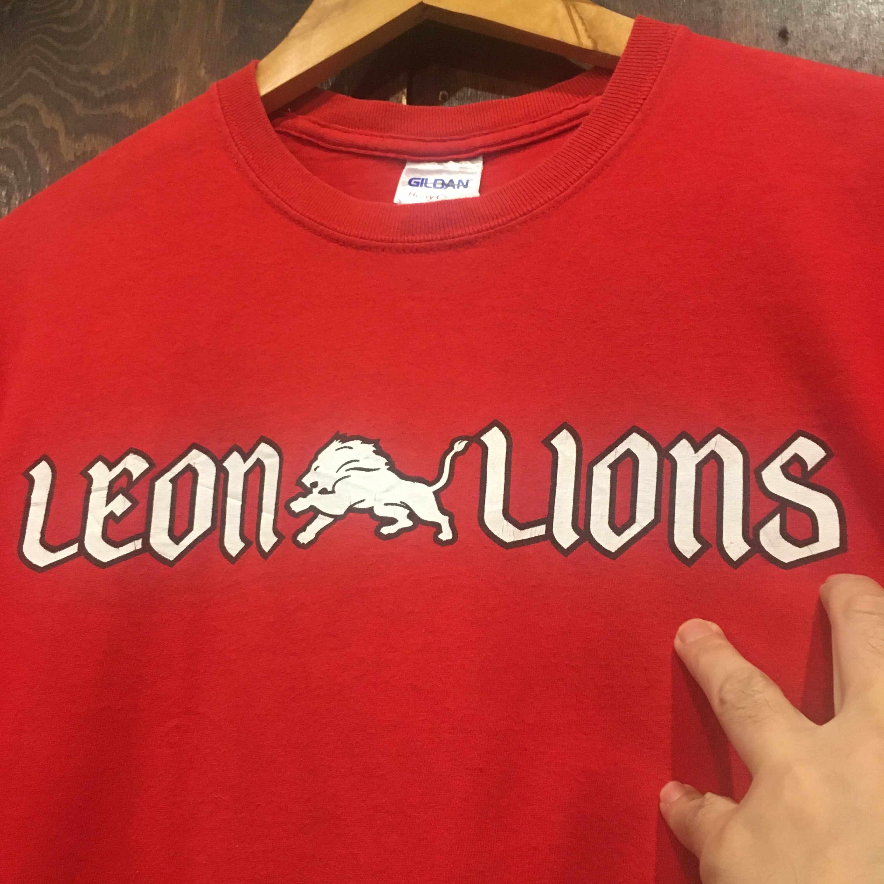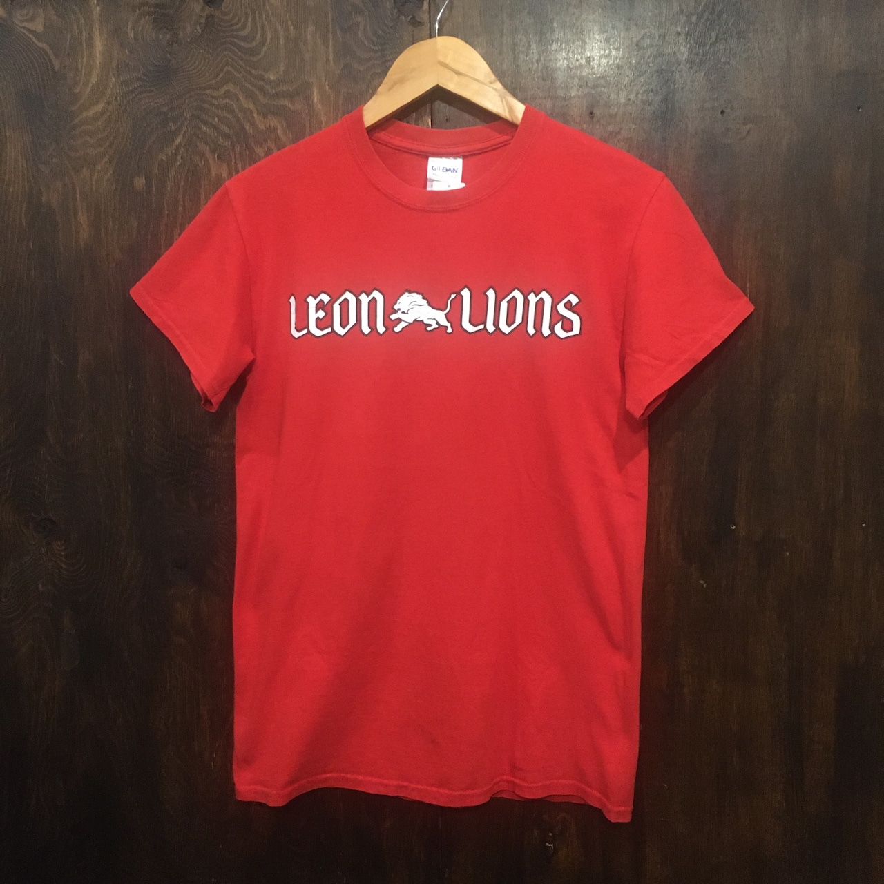 アメリカ古着 半袖Tシャツ LEON LIONS プリントTシャツ 赤 Sサイズです。