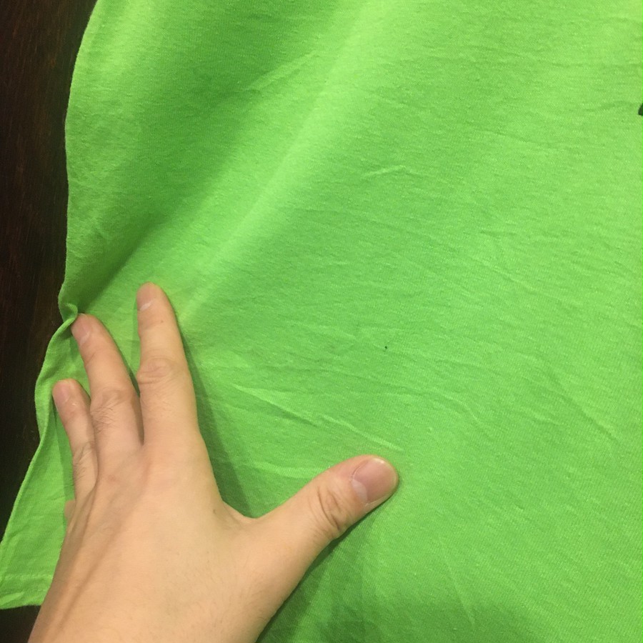 コットン50% ポリエステル50%の蛍光グリーンボディにテニスプレイヤーとロゴがプリントされた一品。