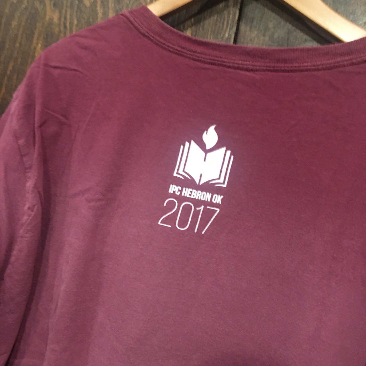 アメリカ古着 半袖T プリントTシャツ ペンテコステ派教会 エンジ ダメージ古着です。
