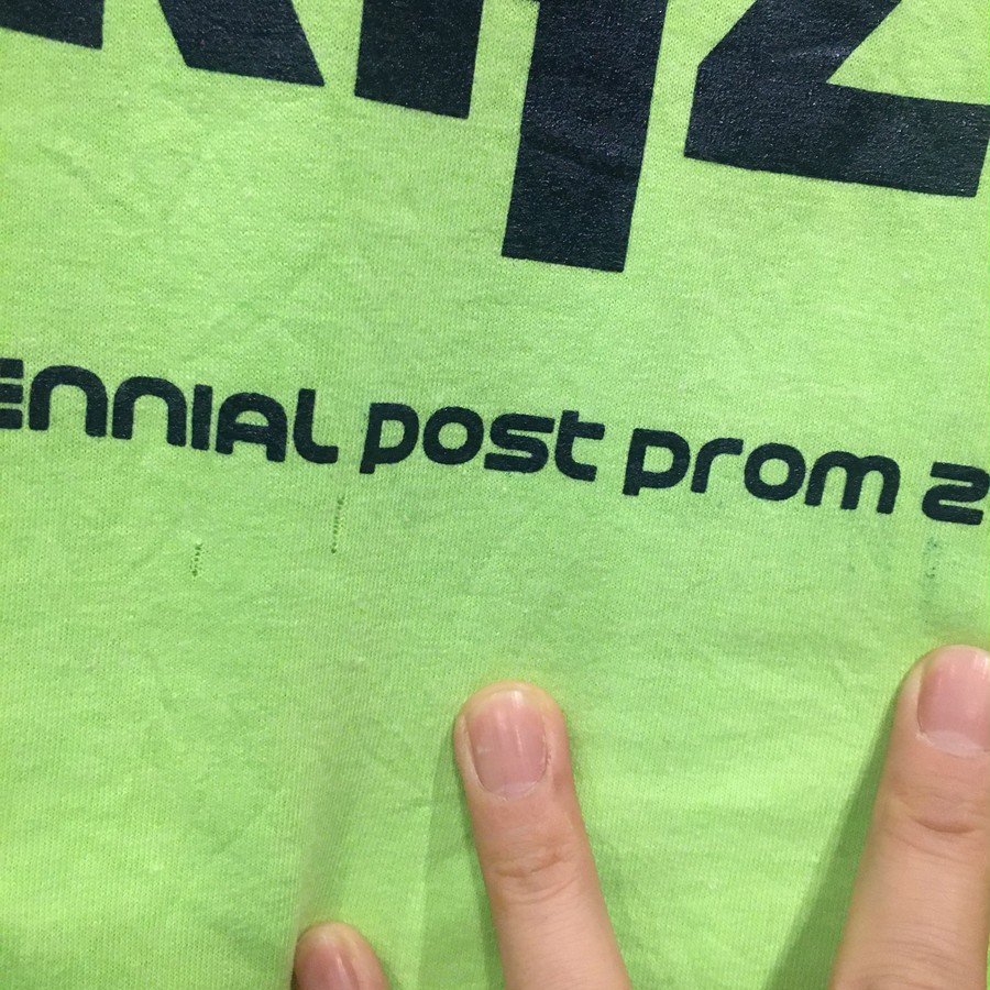蛍光ライムグリーンボディにフロントとバックにプリント入り。