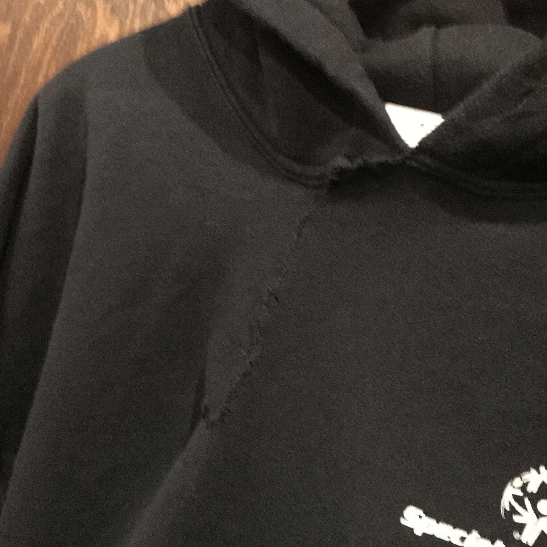 アメリカ古着 スウェットパーカー パーカー 黒 ダメージ古着 Lサイズです。