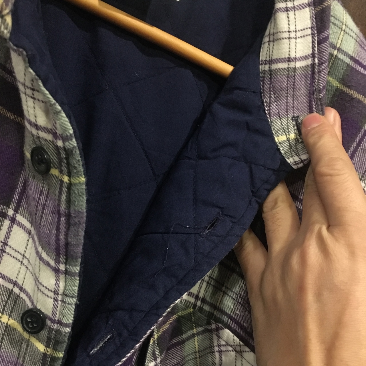 裏地は中綿入りのキルティングになっており、ライトアウターとしても重宝する優れ物。