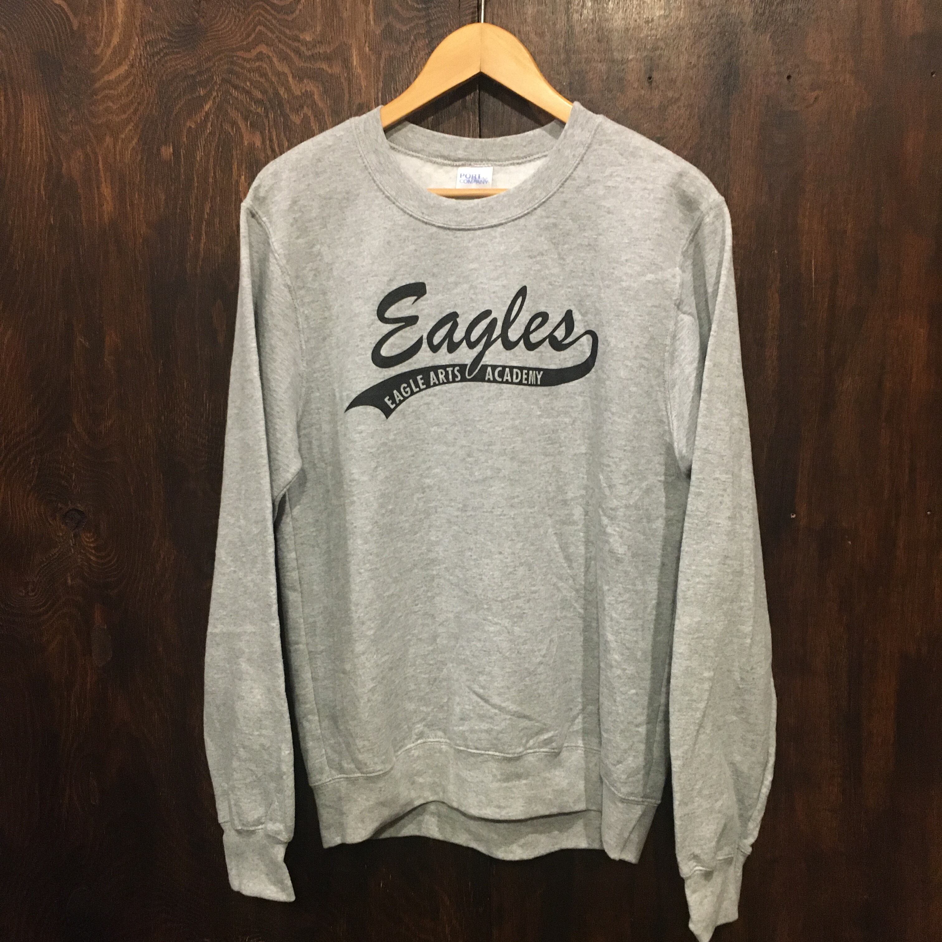 コットン50% ポリエステル50%のグレーボディにカレッジ系(学校)プリント。