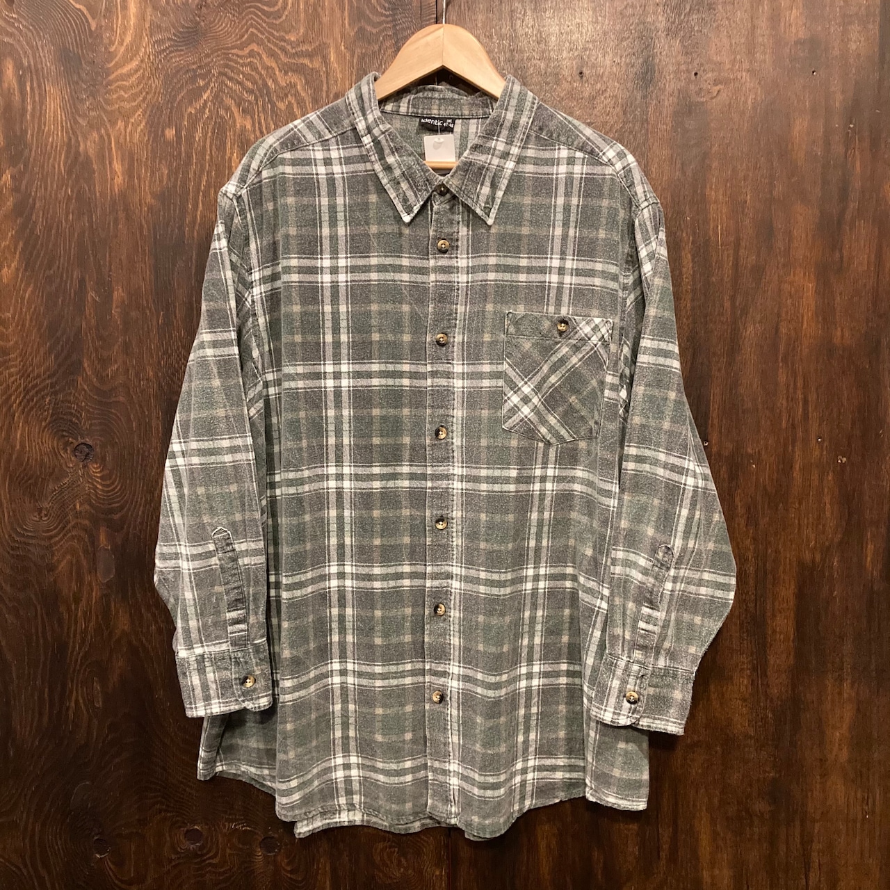 ユーロ古着 長袖 チェックシャツ ネルシャツ プリントネル グレー ビッグサイズです。