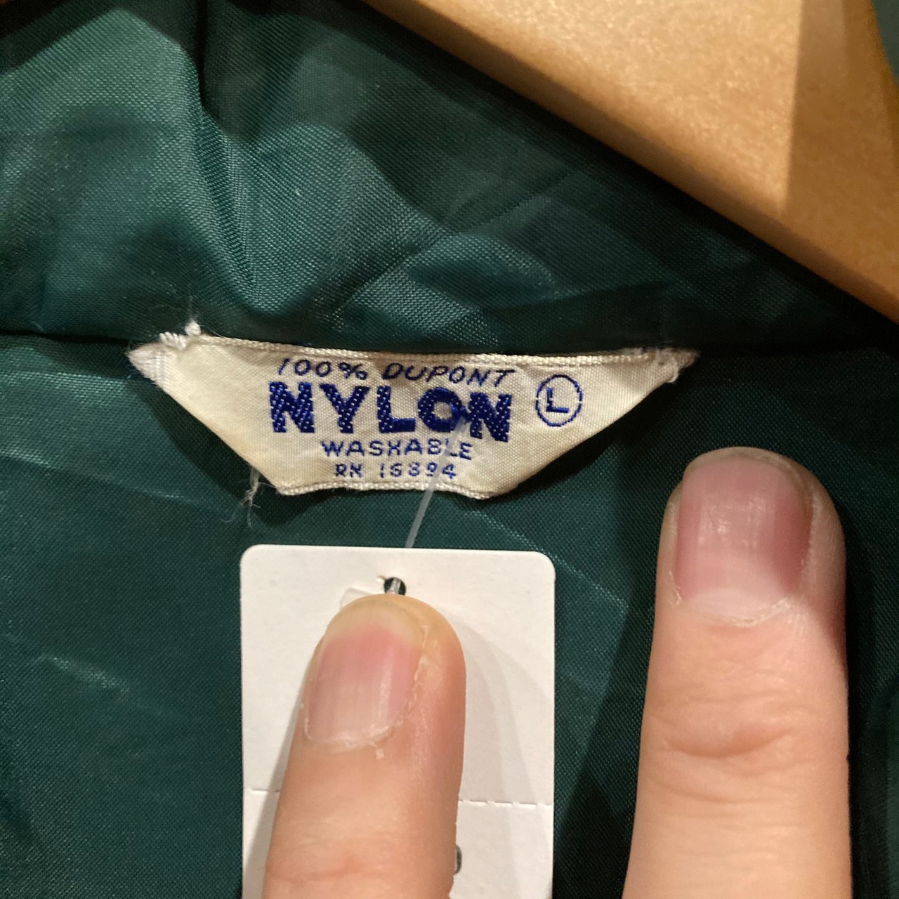 アメリカ古着 70年代 ビンテージ ナイロンジャケット 緑 TALONジップです。