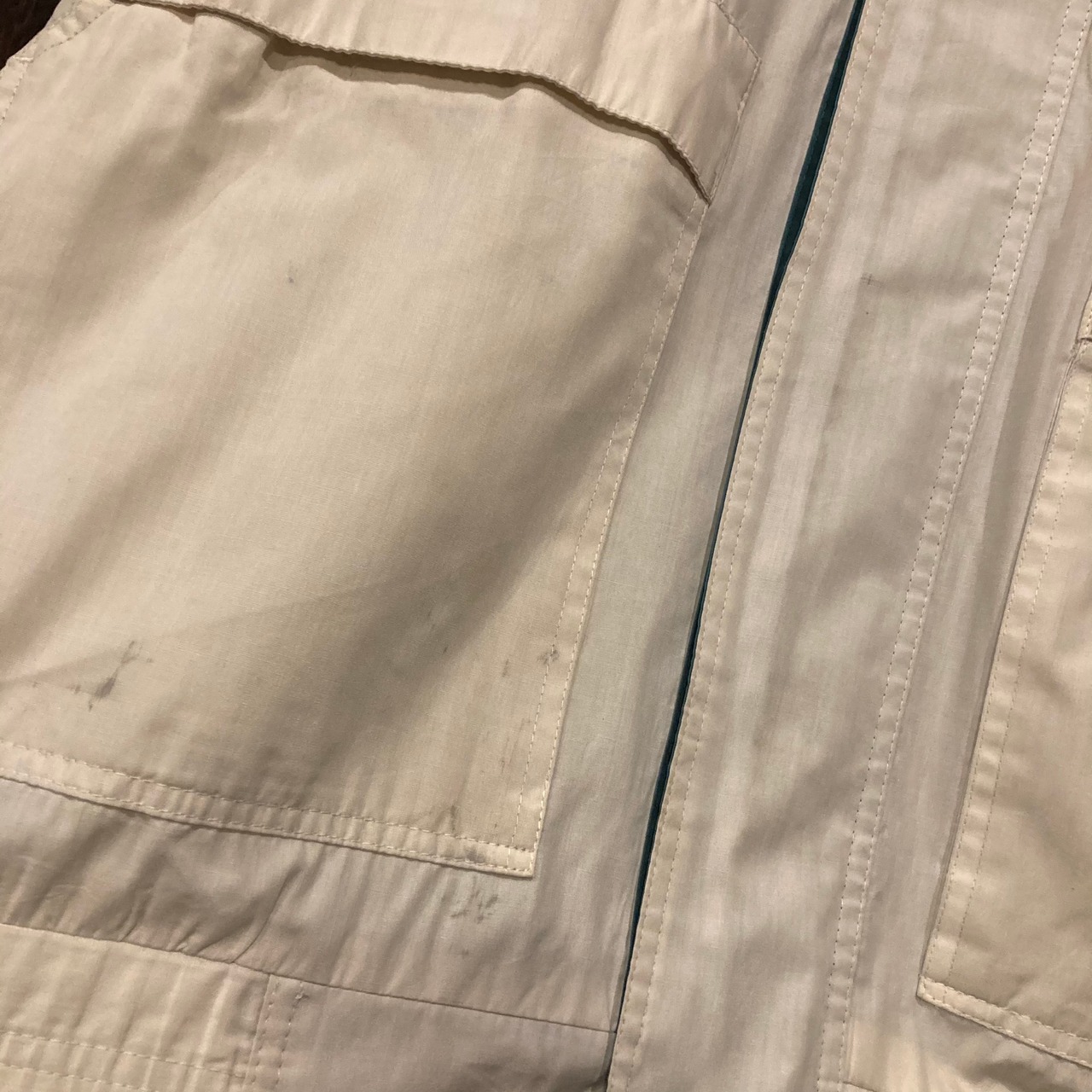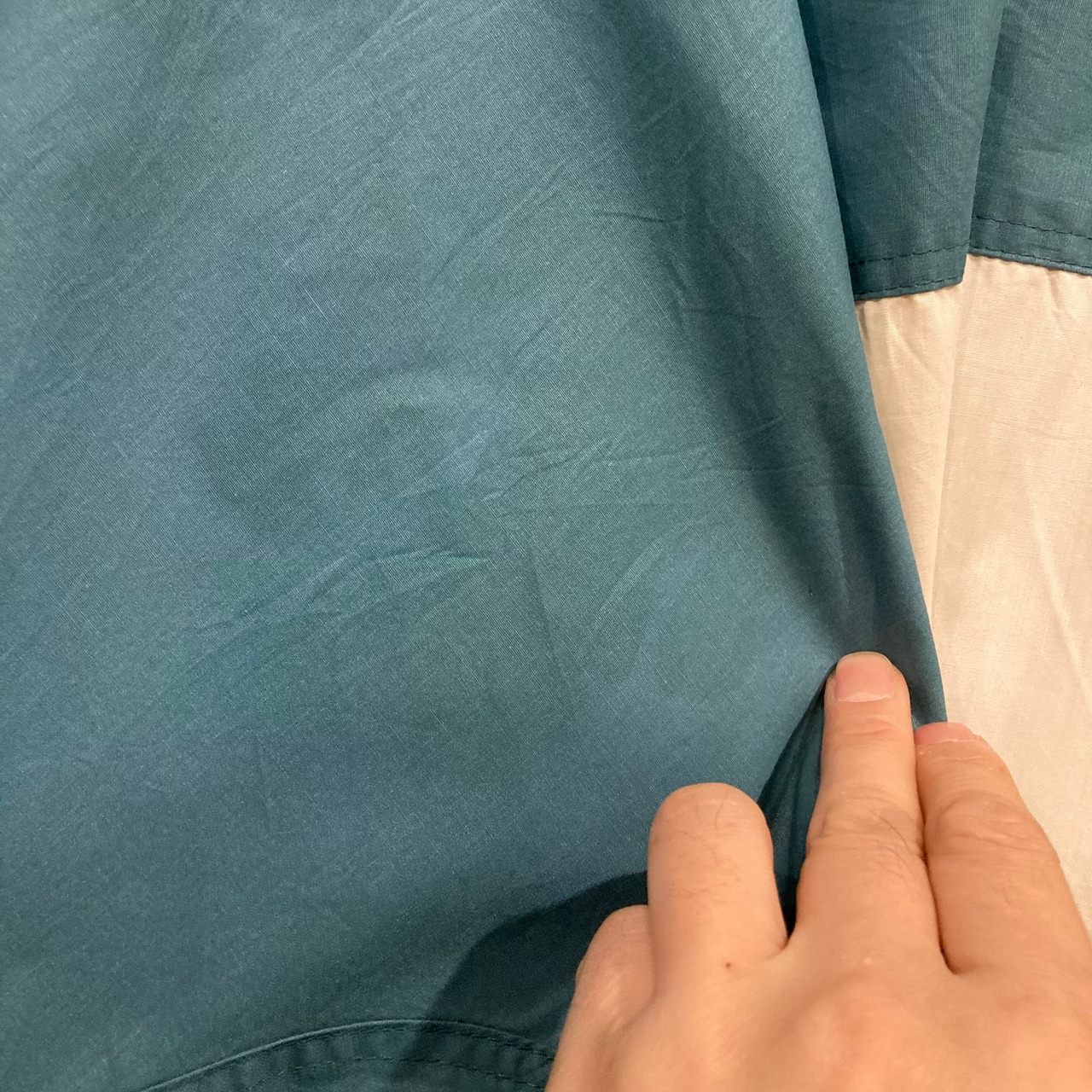 ポリエステル65% コットン35%の薄手のマウンテンパーカーのような素材感。