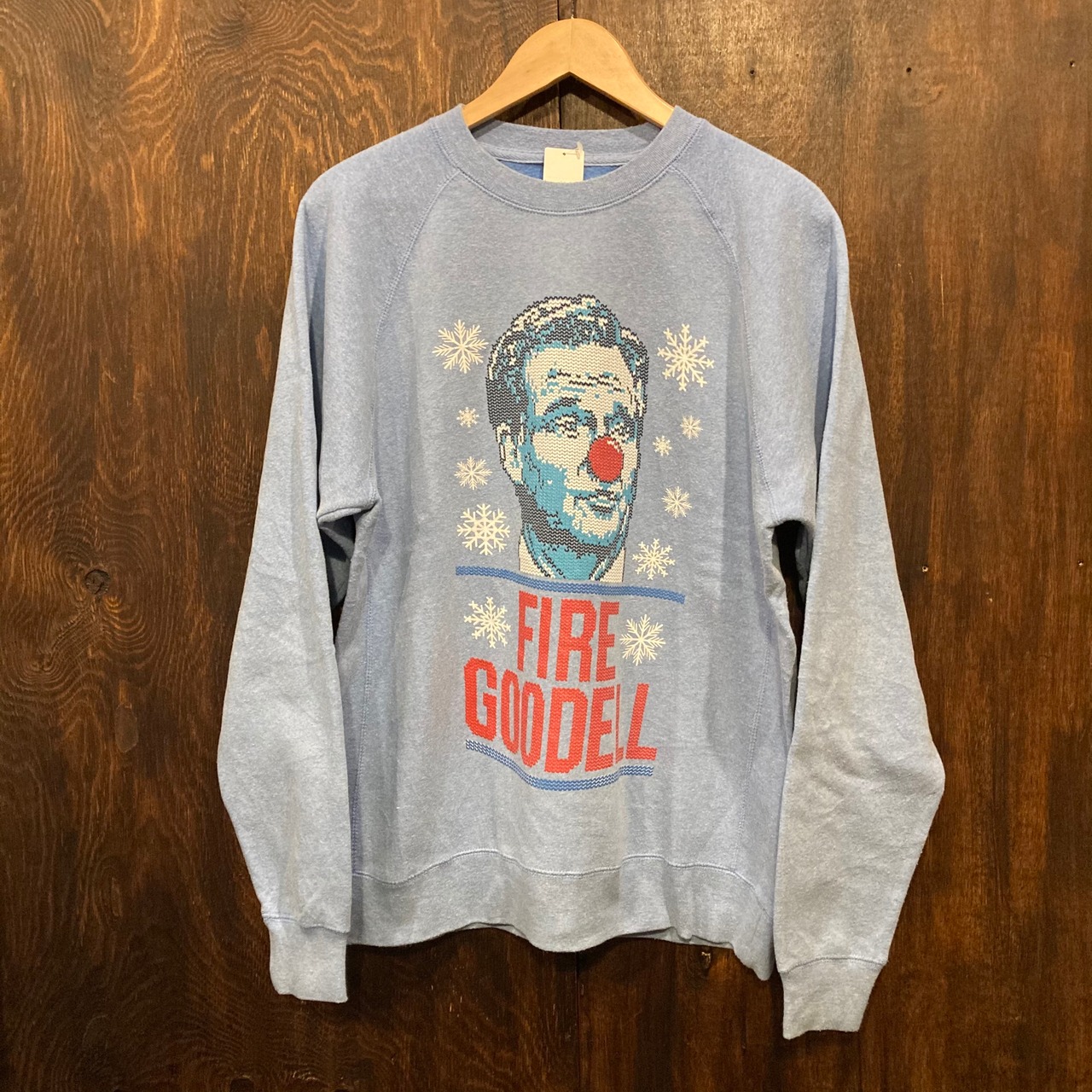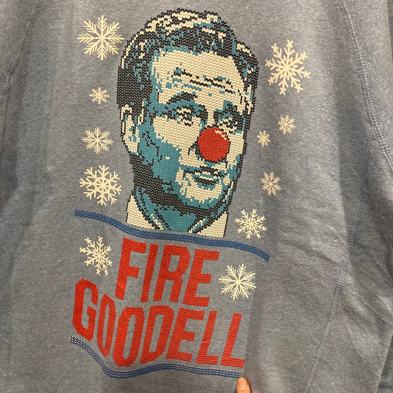 くすんだ水色ボディにNFLのコミッショナー、ロジャーグッデル氏をピエロに見立てた毒っ気のあるユニークなデザインの一品。