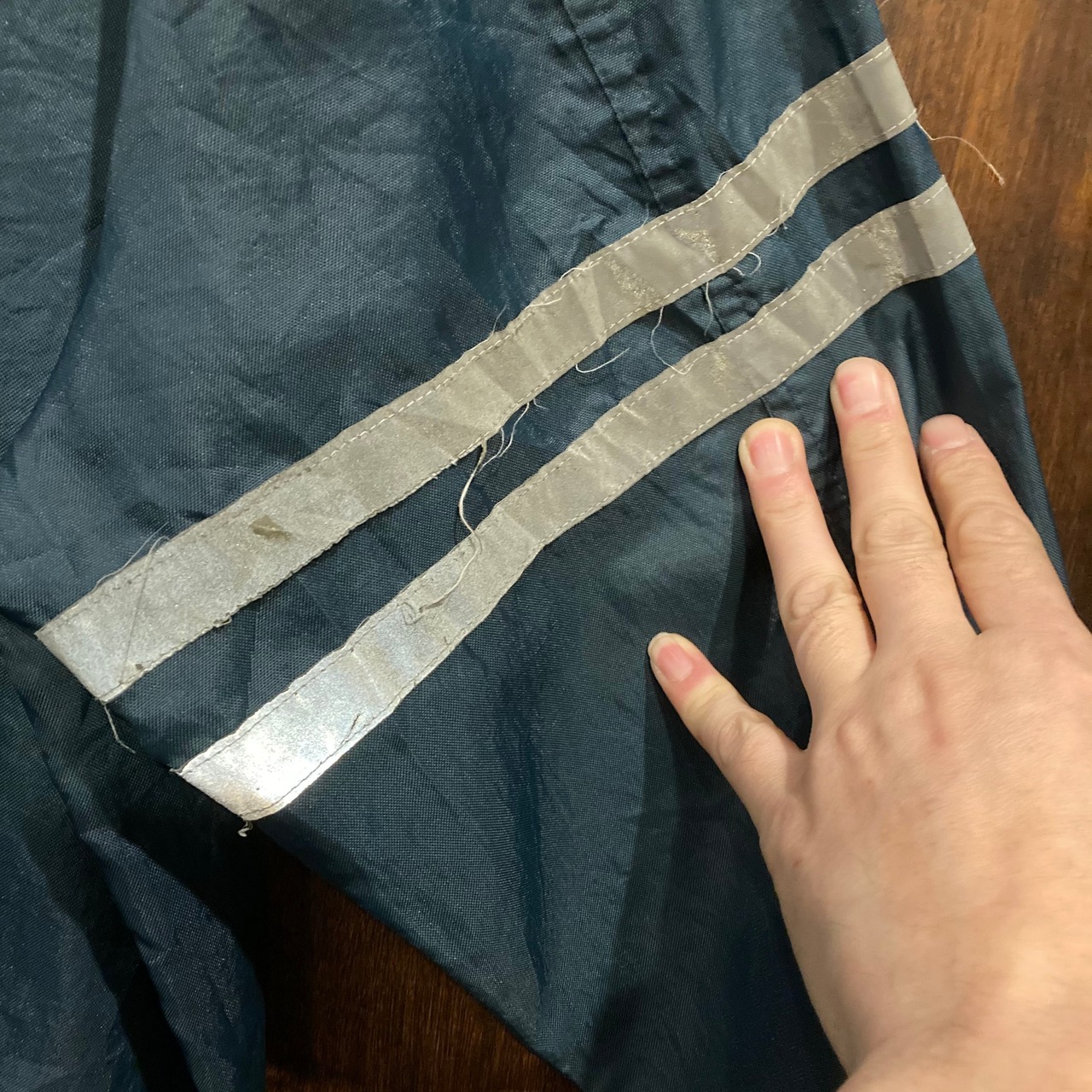 リフレクター部のステッチほつれ、ポケット部のマジックテープステッチほつれ。
