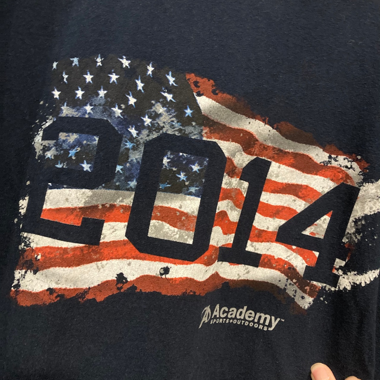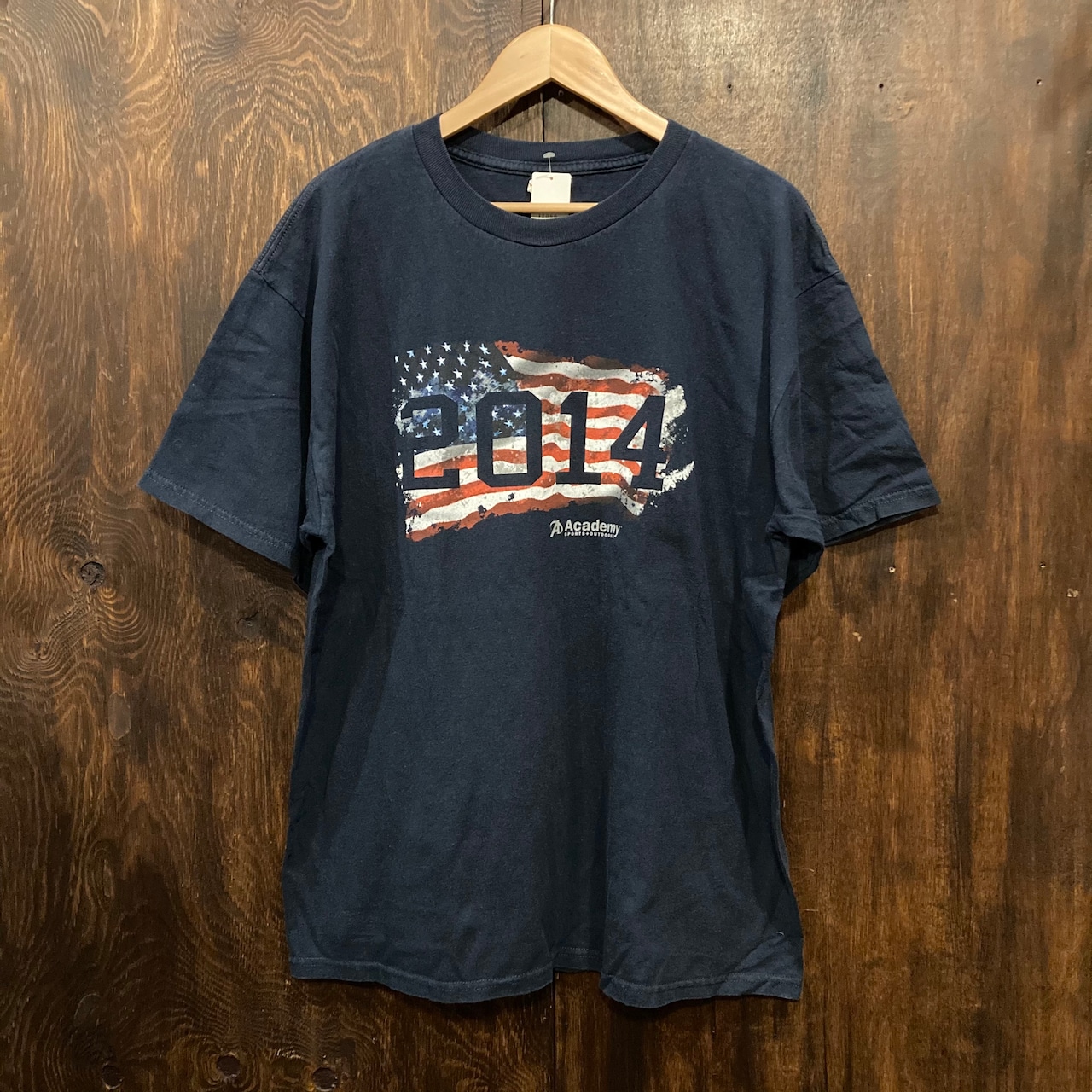アメリカ古着 半袖 プリントTシャツ 紺 星条旗 XL アカデミースポーツ