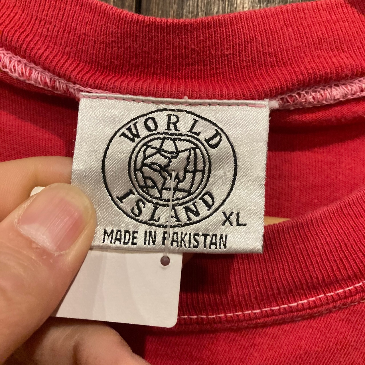 アメリカ古着 WORLD ISLAND 半袖T ポケットT 赤 XL US古着です。