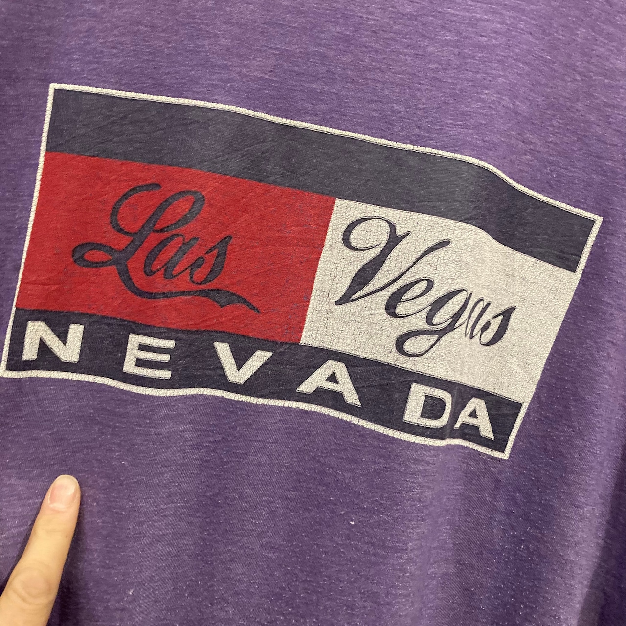 アメリカ古着 半袖T プリントT LasVegas 紫 2XL ルーズシルエットです。