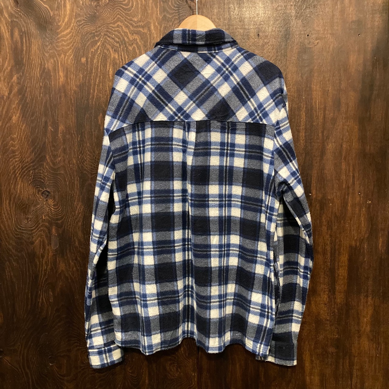 ヨーロッパ古着 フリース素材 チェックシャツ ユーロ古着 青ベース 長袖シャツ ルーズシルエット