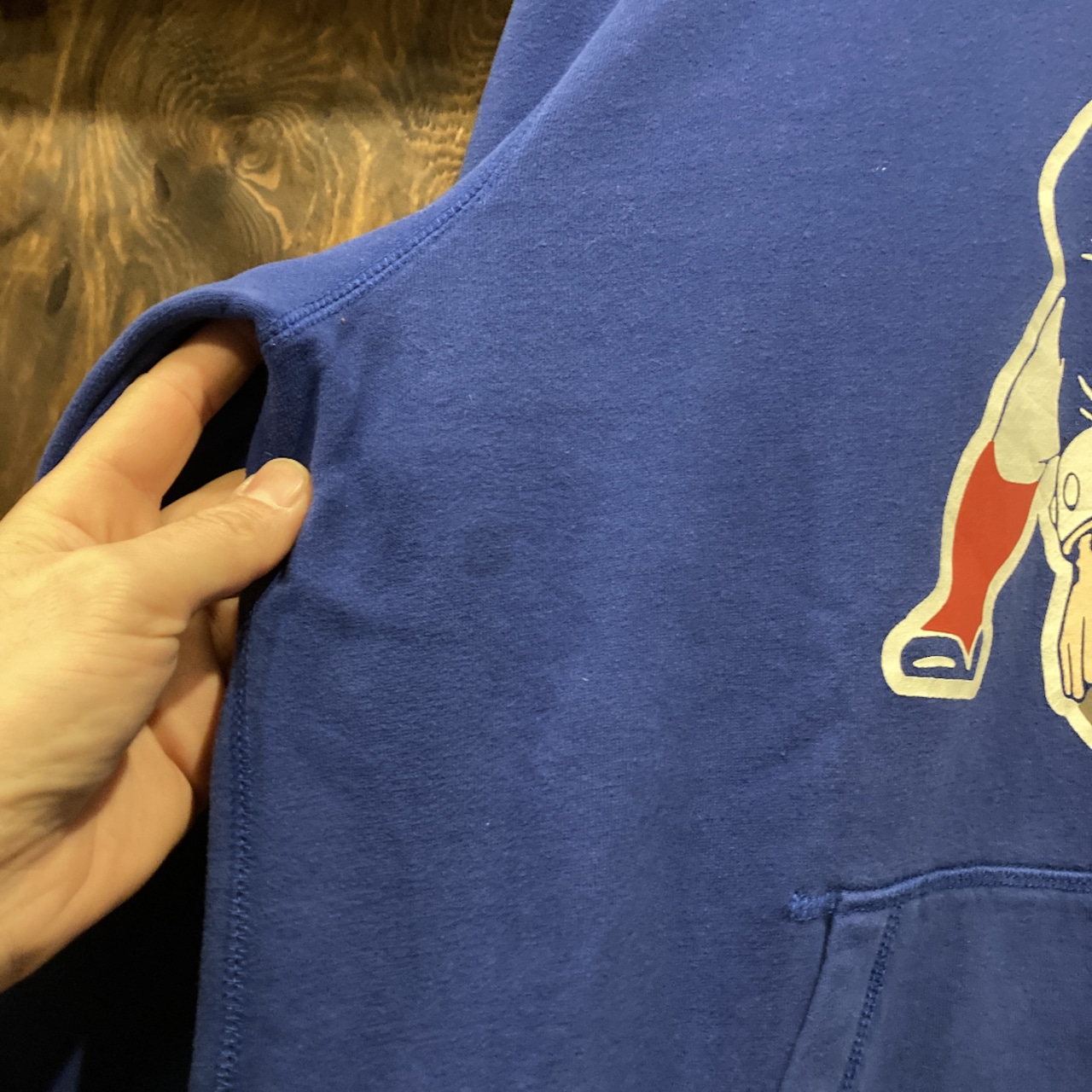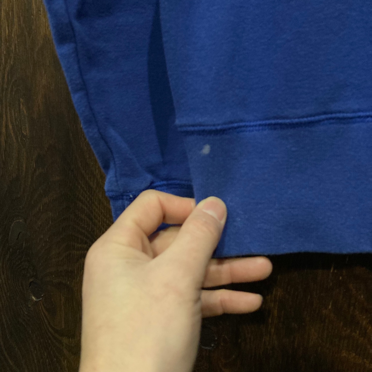裾リブにブリーチ系薄汚れ有り。