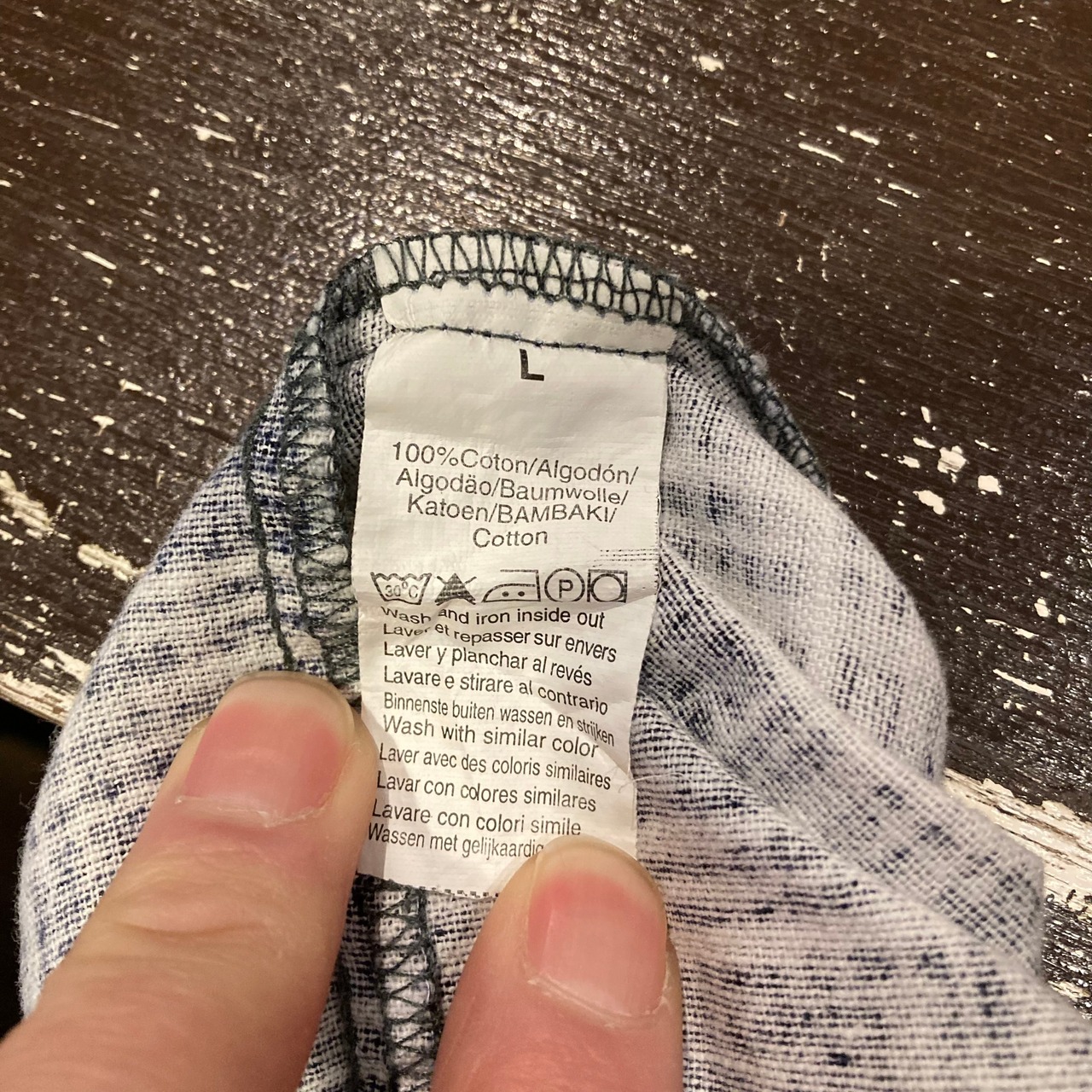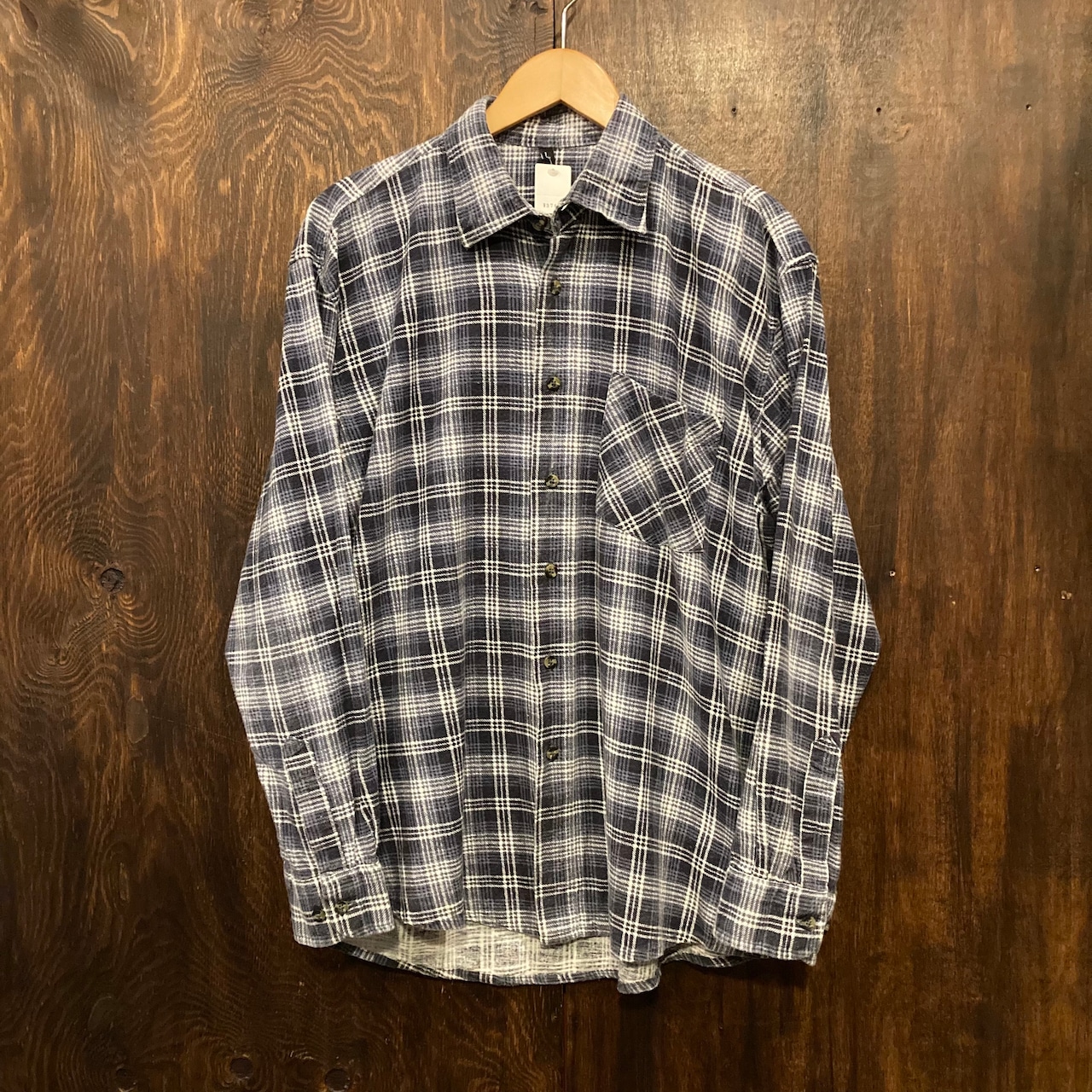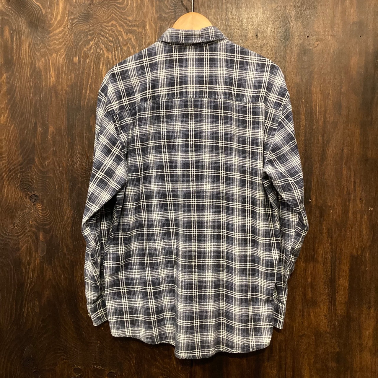 ユーロ古着 長袖ネルシャツ プリントネル チェックシャツ 紺×白 Lサイズ です。