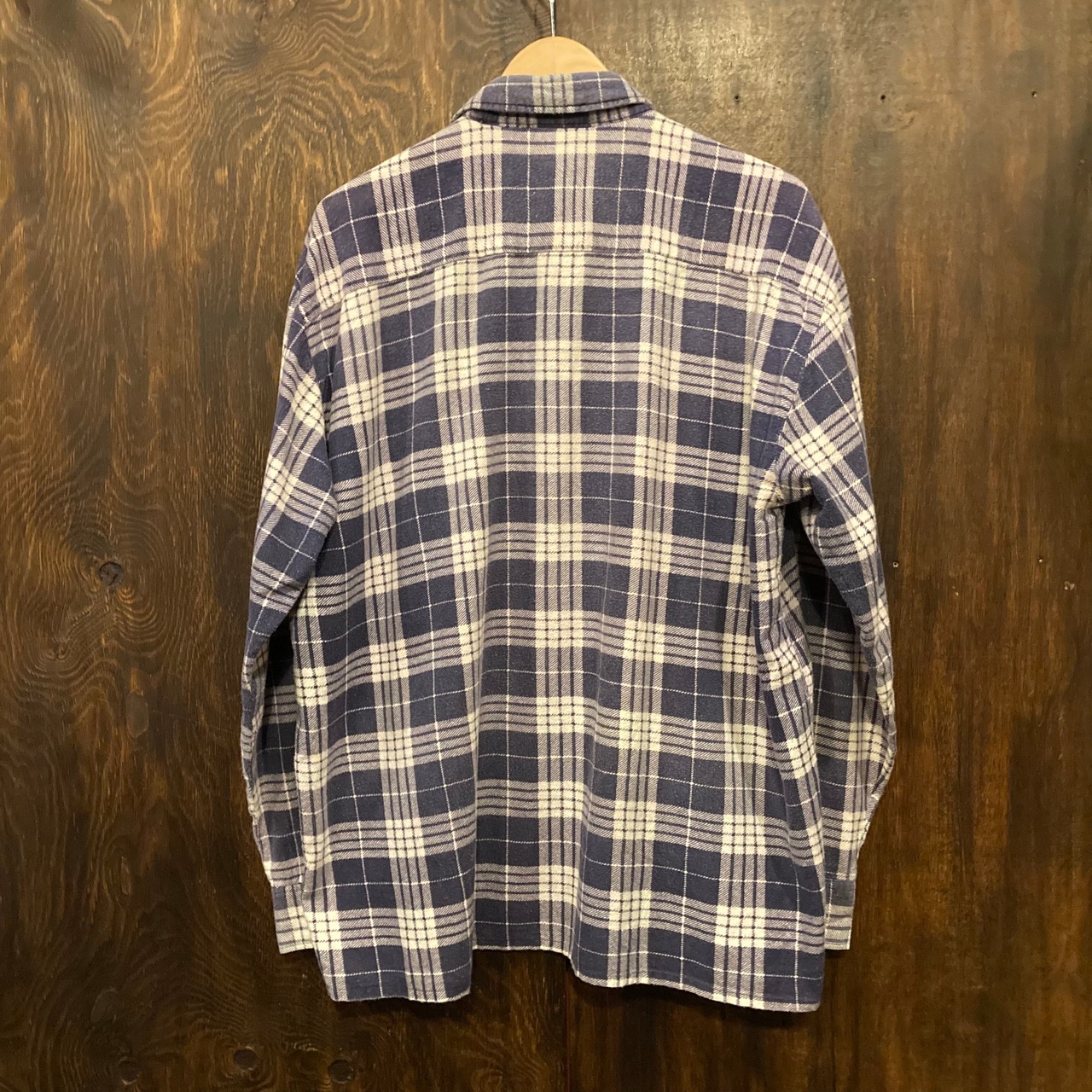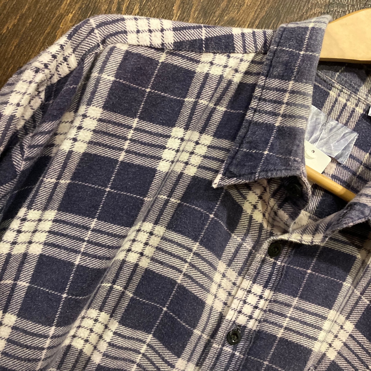 ユーロ古着 長袖ネルシャツ プリントネル チェックシャツ 紺×紫 XLサイズです。