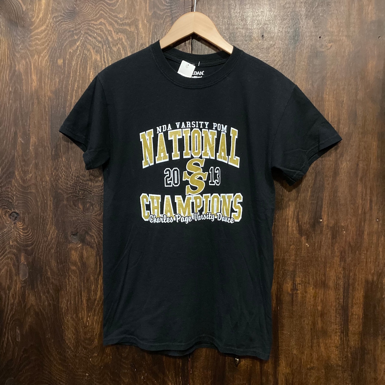 黒ボディのフロントは5段ロゴ、バックにはネームロゴがプリントされた、ダンス大会から何かのTシャツです。